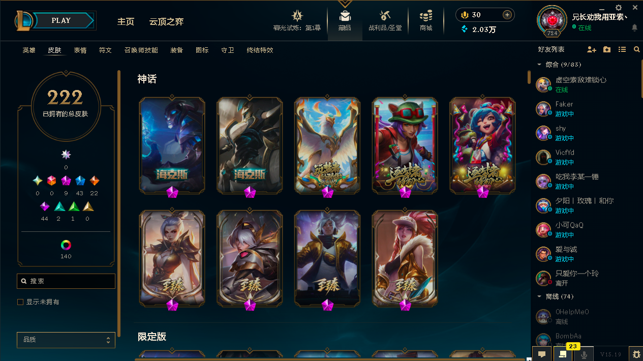 英雄联盟【端游】最高上过1050分千分王者账号,质量皮肤