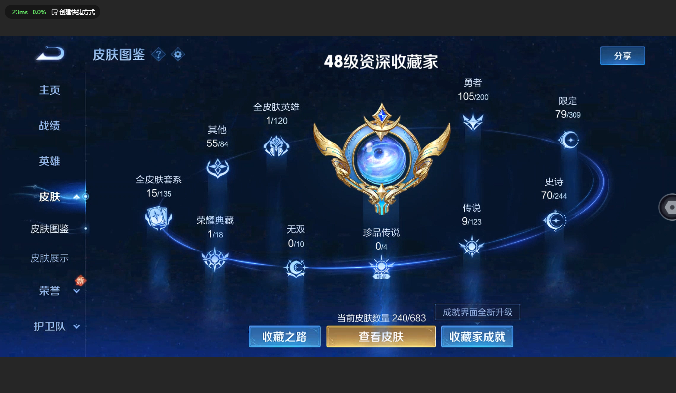 营地账号:337851015/[6845023]8印记 1典藏 1星传说 9传说 79限定 实名: 可修改 性别: 男号 贵族等级: V8 英雄数: 121 皮肤数: 240 荣耀水晶: 鸣剑·曳影 星传说: 零号·雷霆 皮肤: 黄金射手座,炽阳神光,零号·赤焰,无双飞将 李小龙,奔雷神使,游园惊梦,梁祝,时雨天司,引擎之心,龙胆,异界灵契,神威,永曜之星,天狼狩猎者,冰霜恋舞曲,天狼运算者,