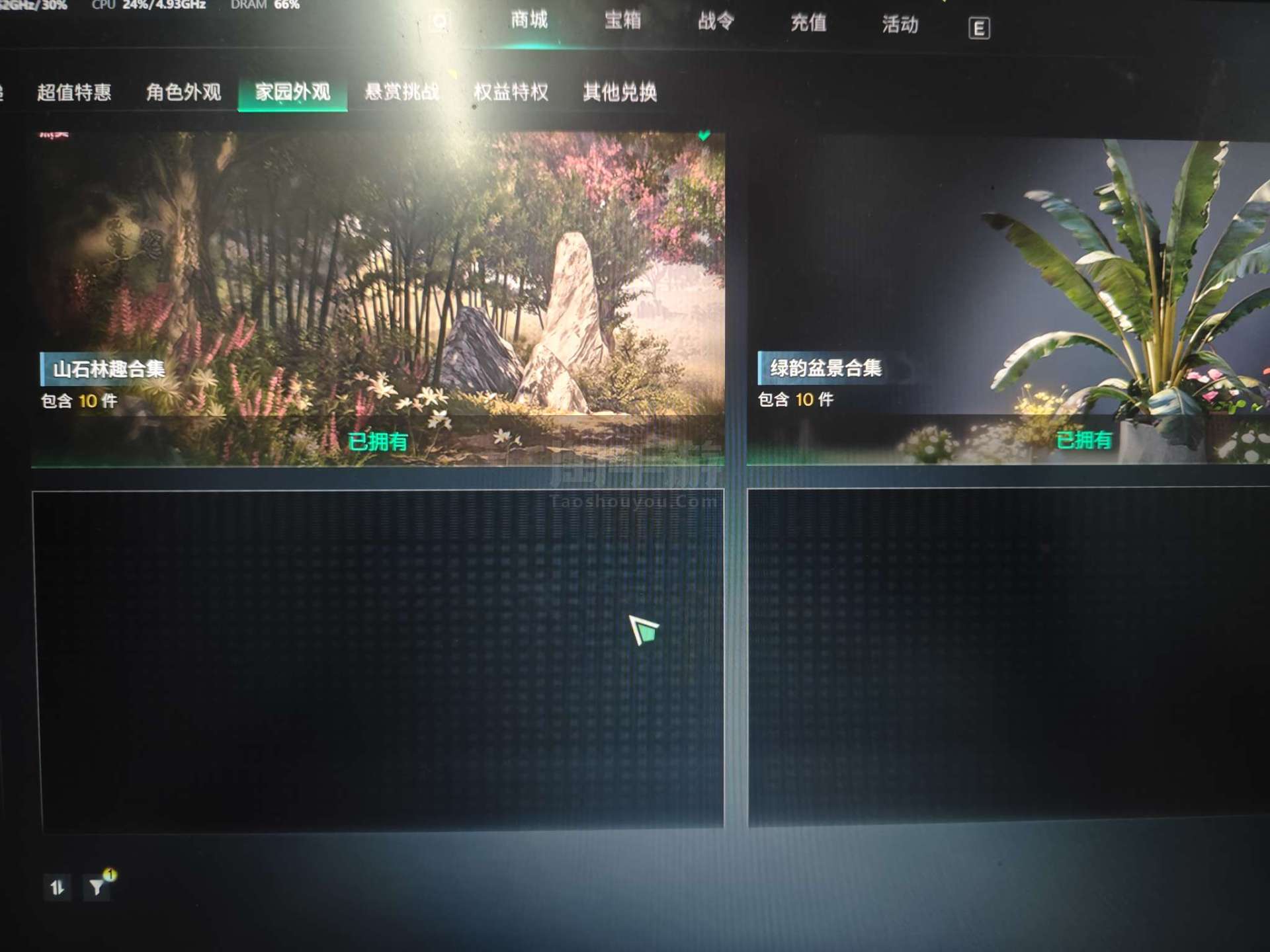 10金时装,10金武器皮肤,多家具 还剩8个石头,模组大毕业,永恒岛大量物资,还有个单车皮。