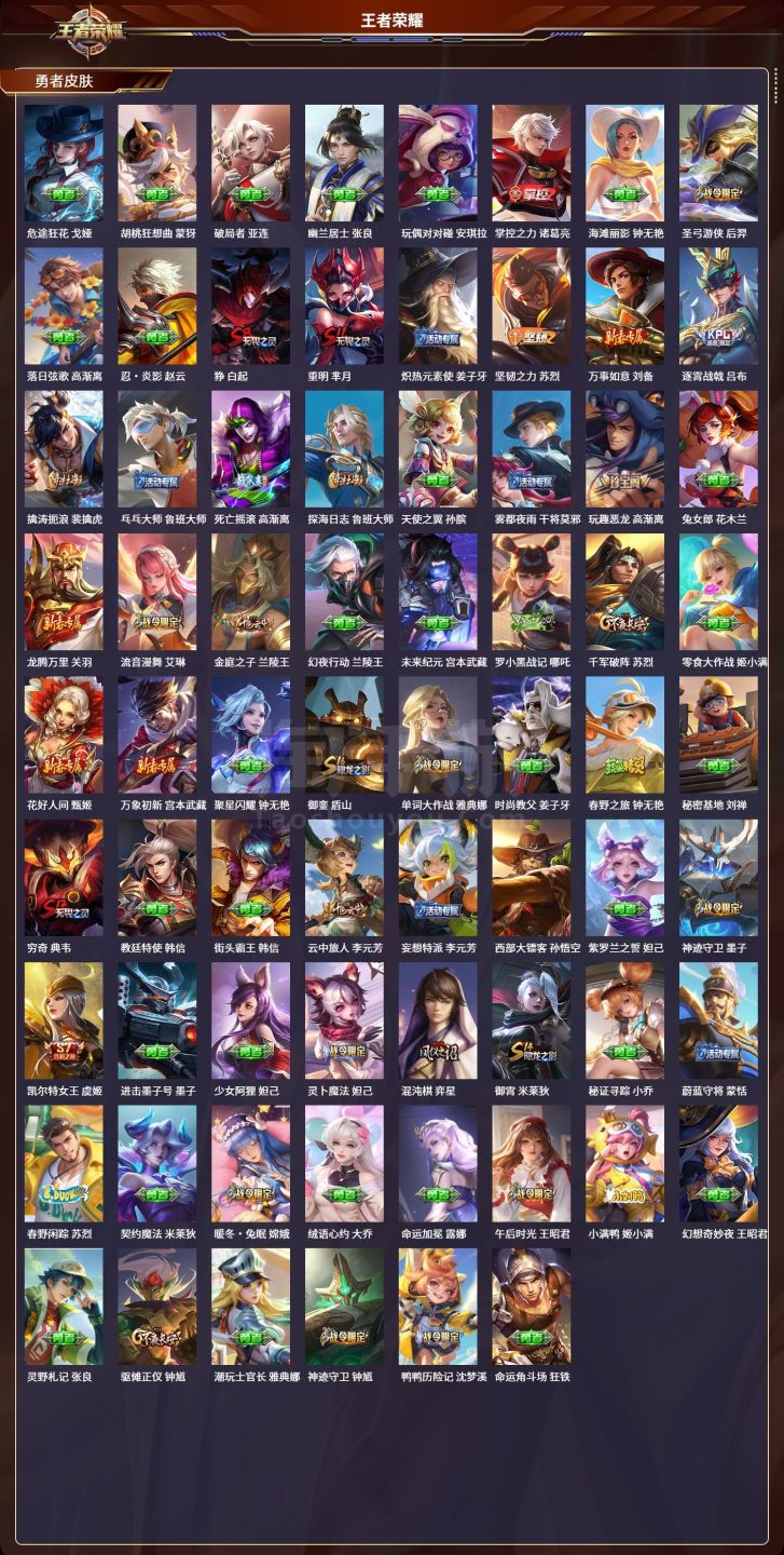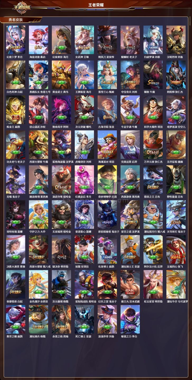 安卓微/永恒钻石/538皮肤/127英雄/3典藏/0珍品无双/4无双/8珍品传说/72传说/173