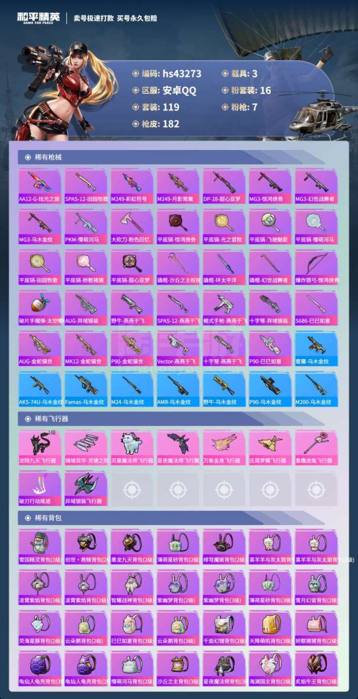 hs43273 安卓手Q-10王牌印记-16粉装-7特效枪-3载具-59288热力值-119套装-1