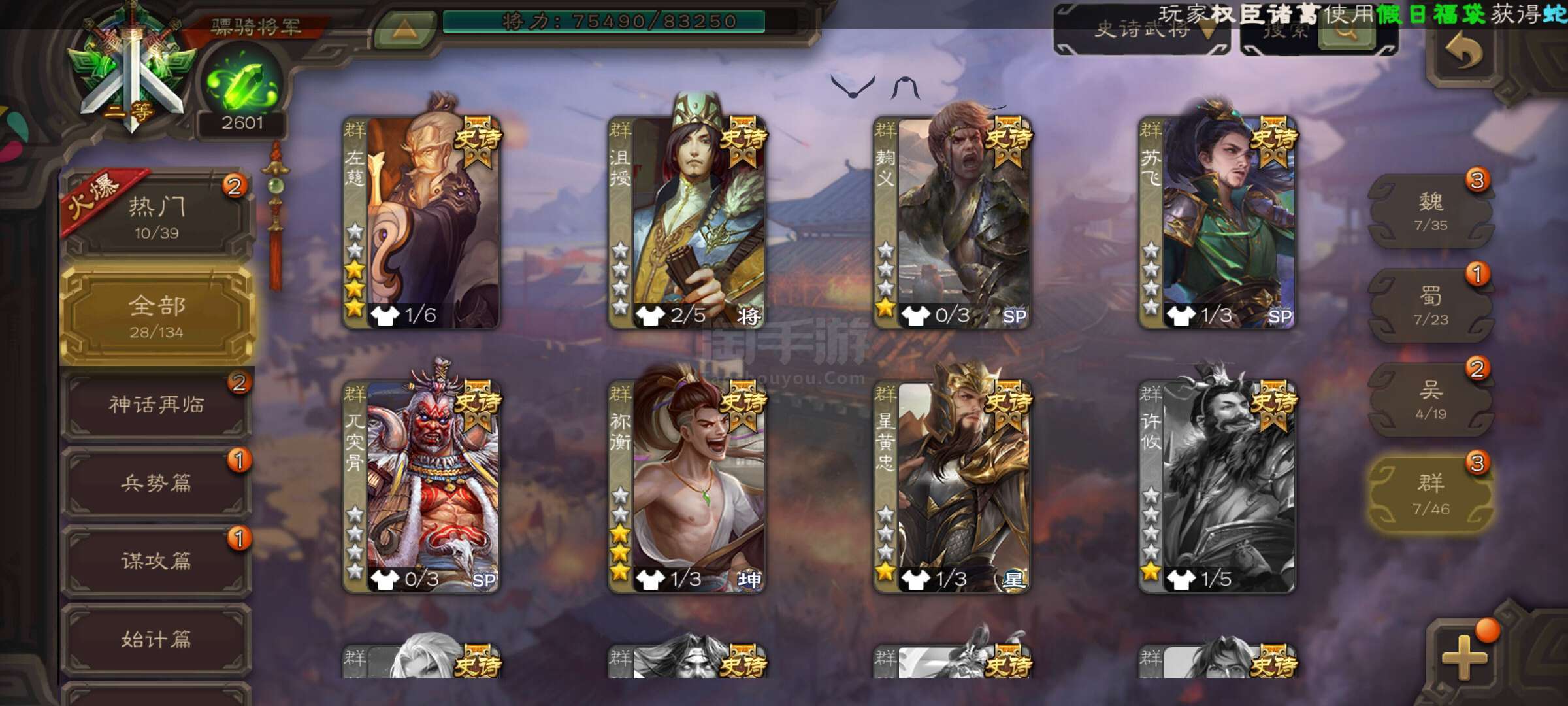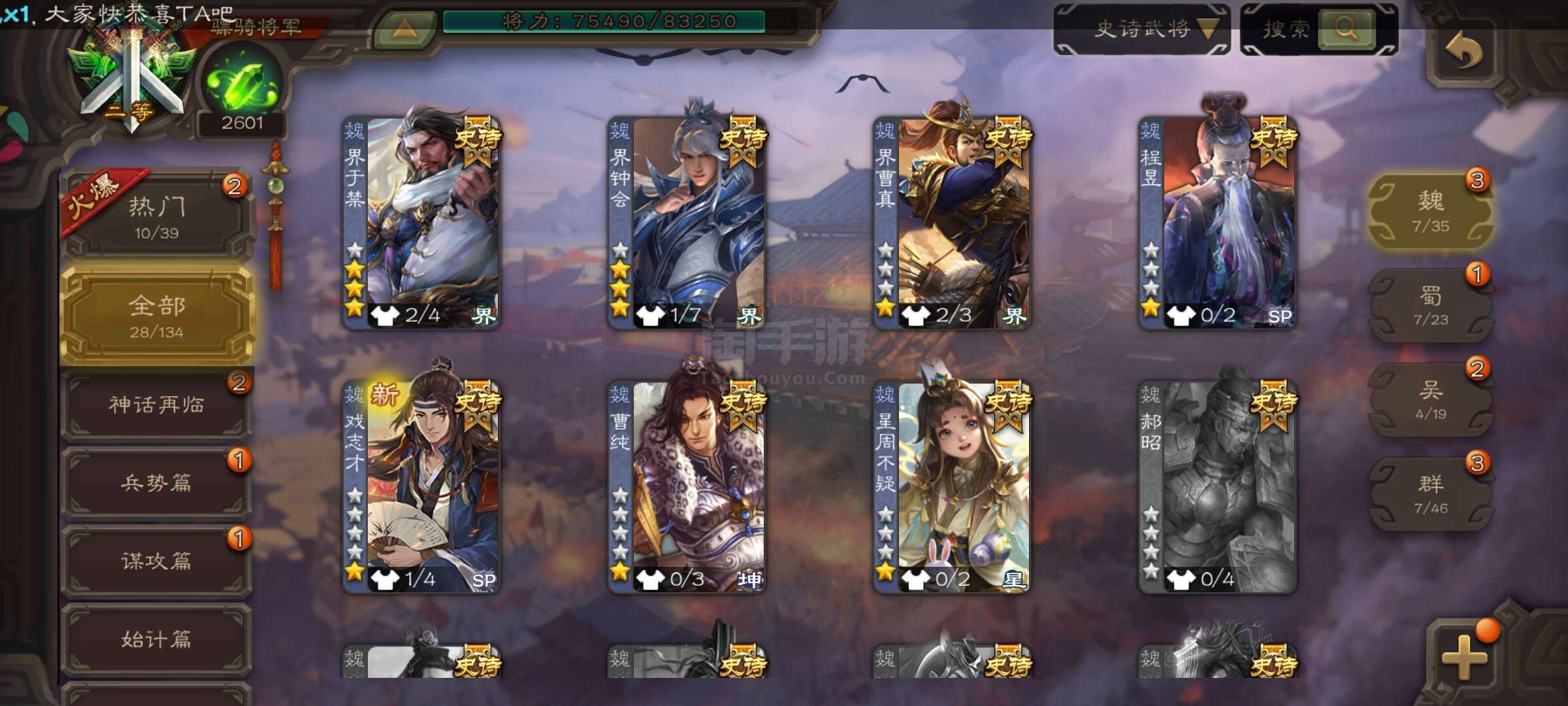 史诗武将数量: