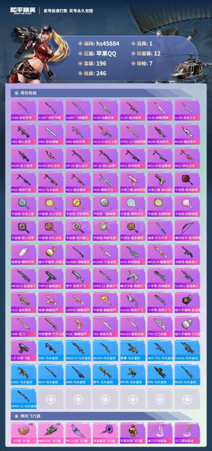 hs45884 苹果手Q-15王牌印记-12粉装-7特效枪-1载具-83847热力值-196套装-2