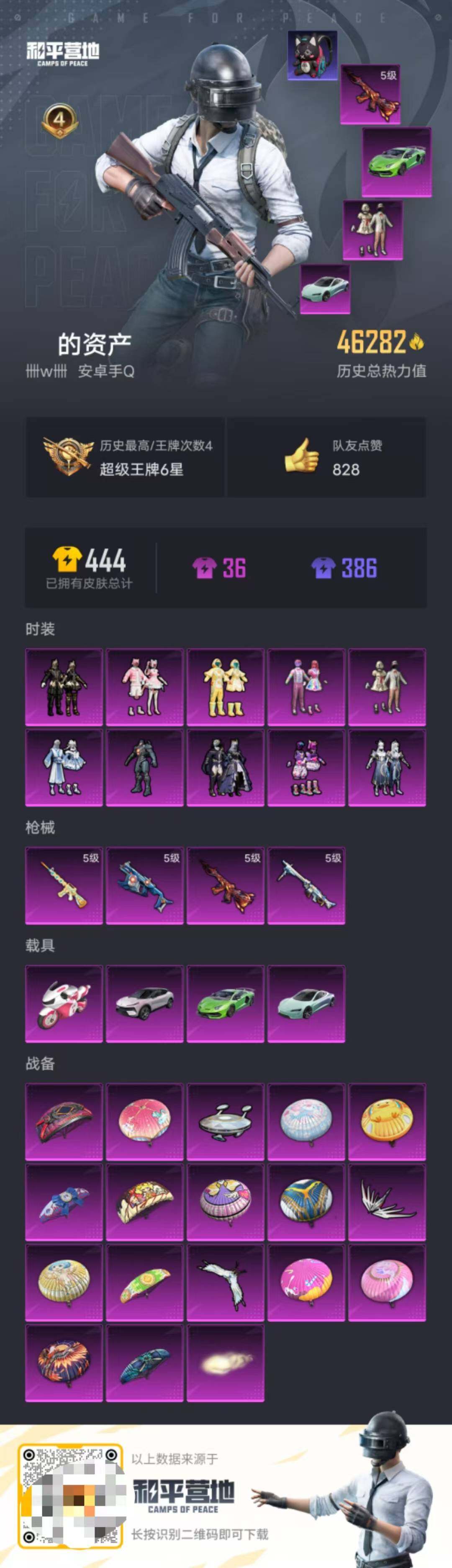 【商品标题】:W4538 可立即换绑无需挂单养号 安卓 手Q-10粉装-4特效枪-4载具-46282热力值-4印记-83套装-102枪皮