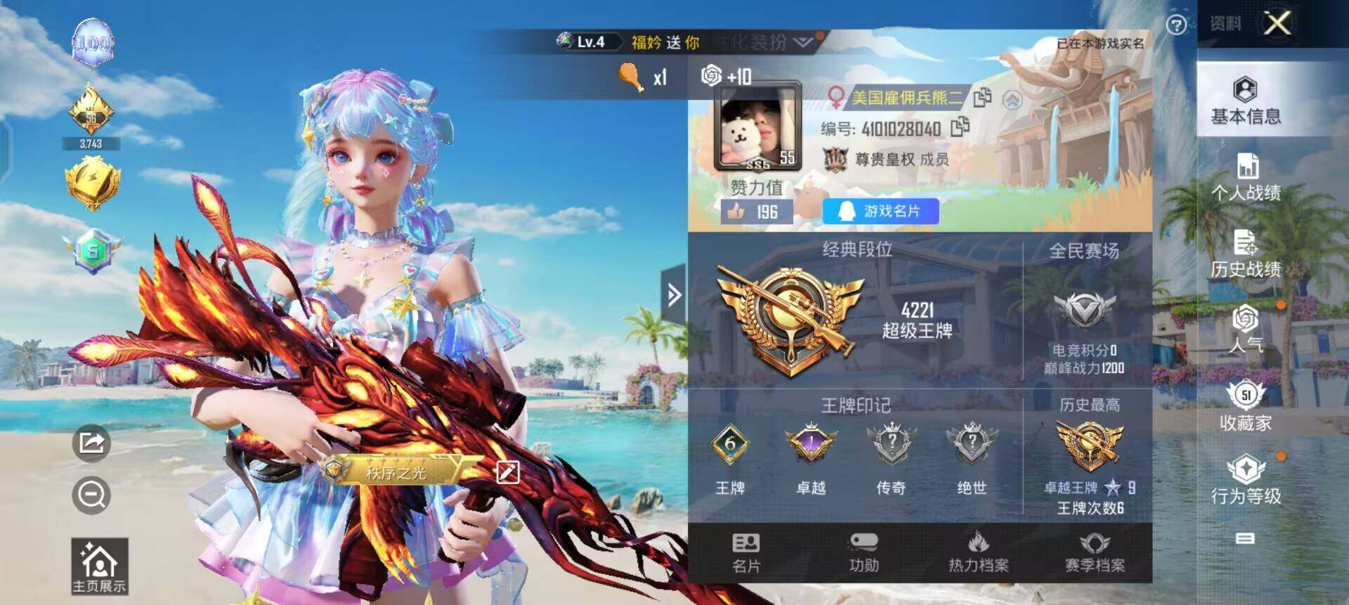 【特效枪等级】:M416-风花雪月(五级),M416-电玩时刻(五级),GROZA-镜光银凌(五级),AUG-暖羊咩咩(五级),M762-青锋波束(五级),UMP45-量子极限(五级),Kar98K-巳巳如意(五级),DP-28-千金淑猫(六级)