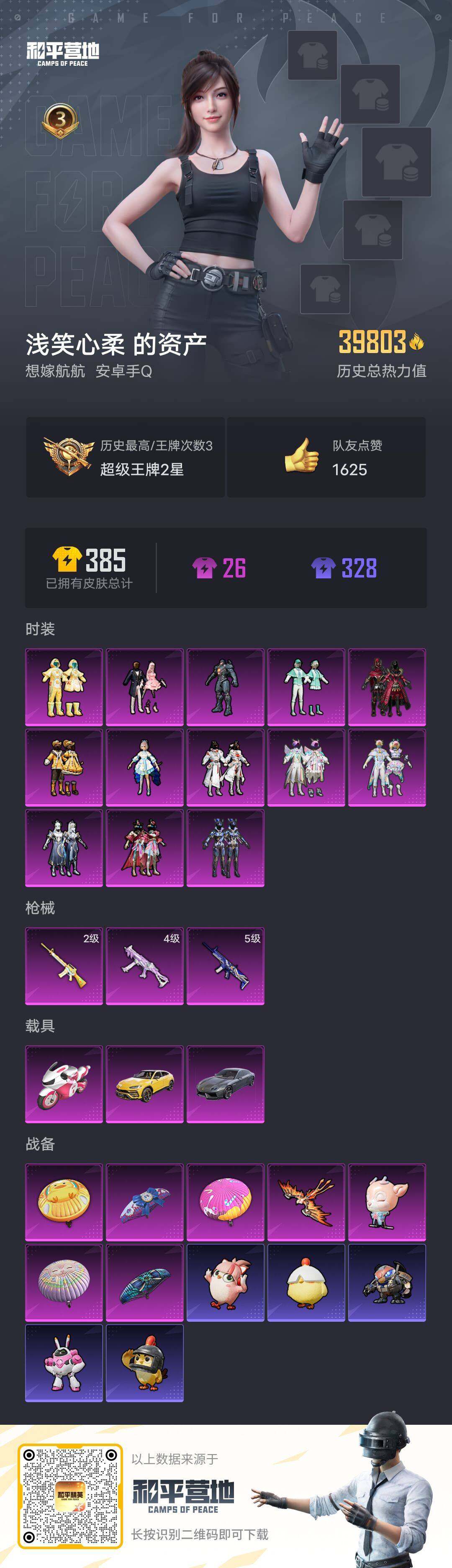 【商品标题】:可立即换绑无需挂单养号 安卓 手Q-13粉装-3特效枪-3载具-2粉色飞行器-39803热力值-3王牌印记-104套装-100枪皮