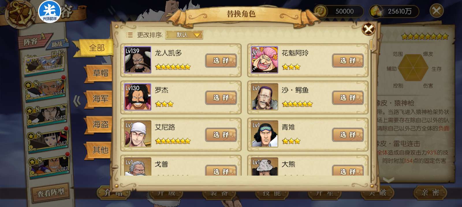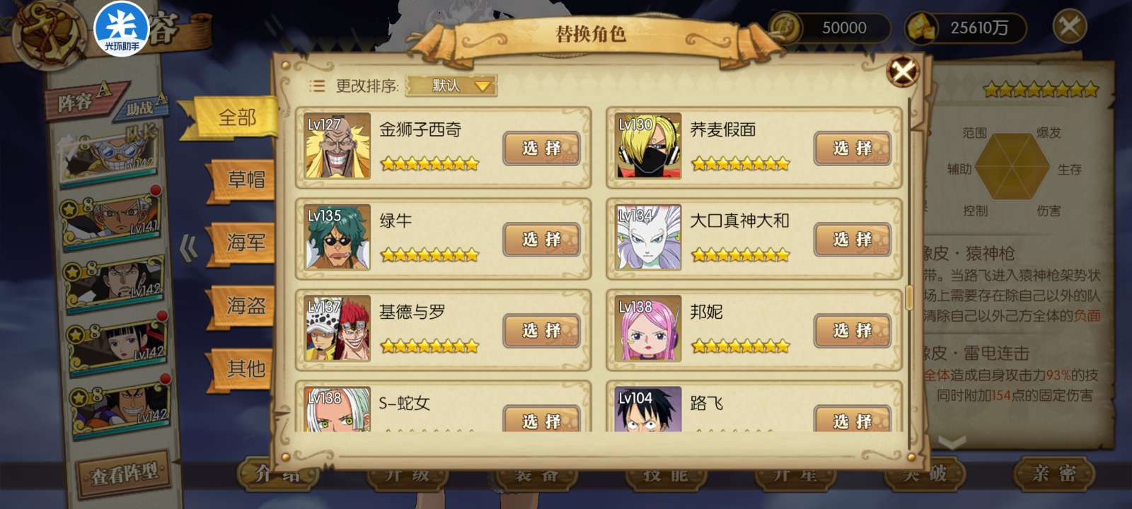 航海王:燃烧意志【安卓4399】有月卡,小助手已开,UR券172,50装备券,4708彩钻,很多角色传记没打
