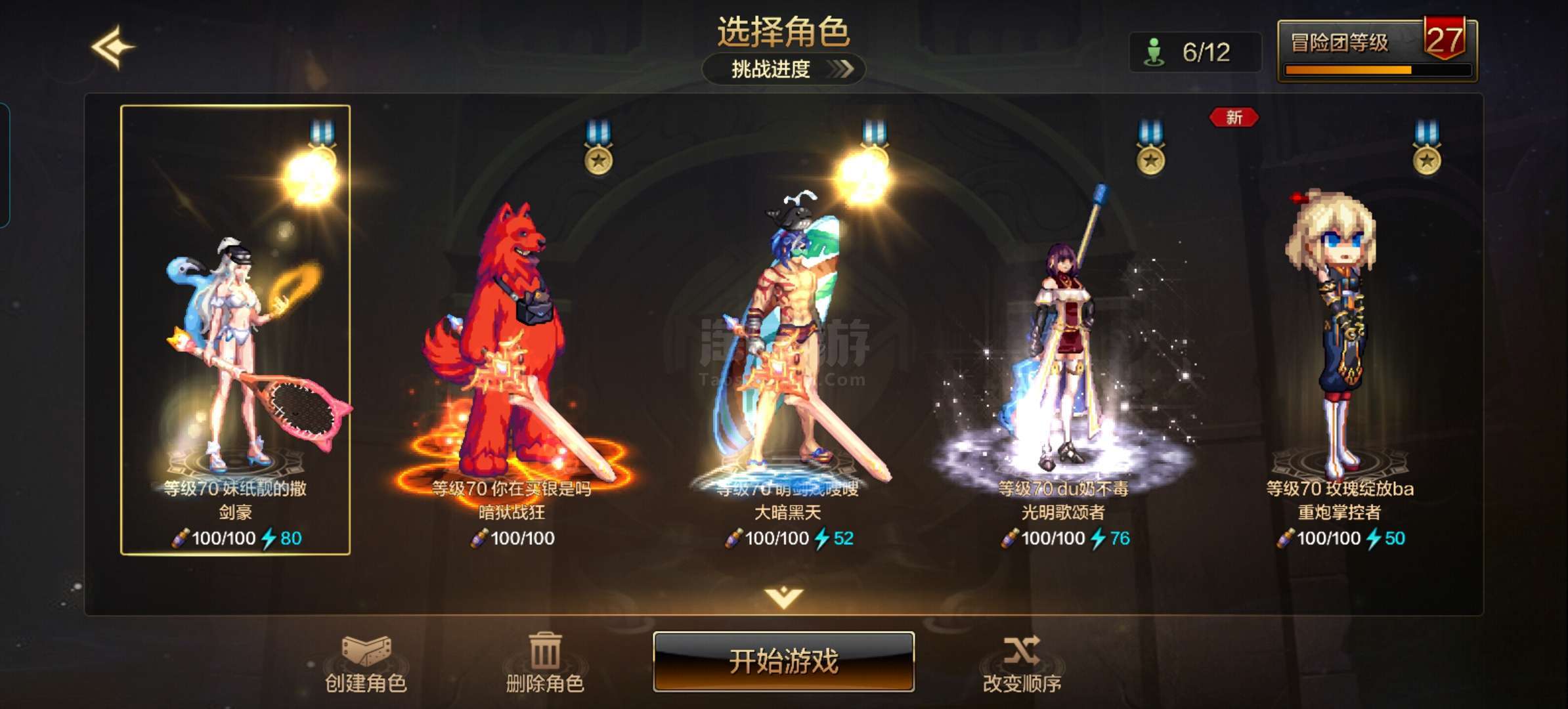 DNF手游【安卓QQ】看一看 7.6万抗魔剑豪 五个打团角色满级角色