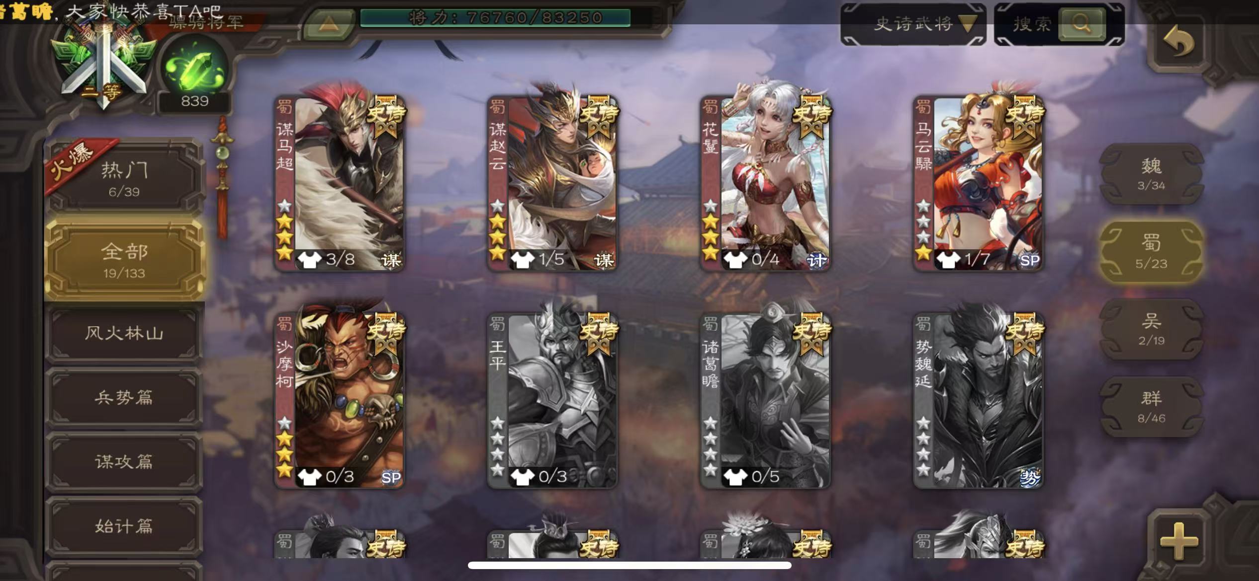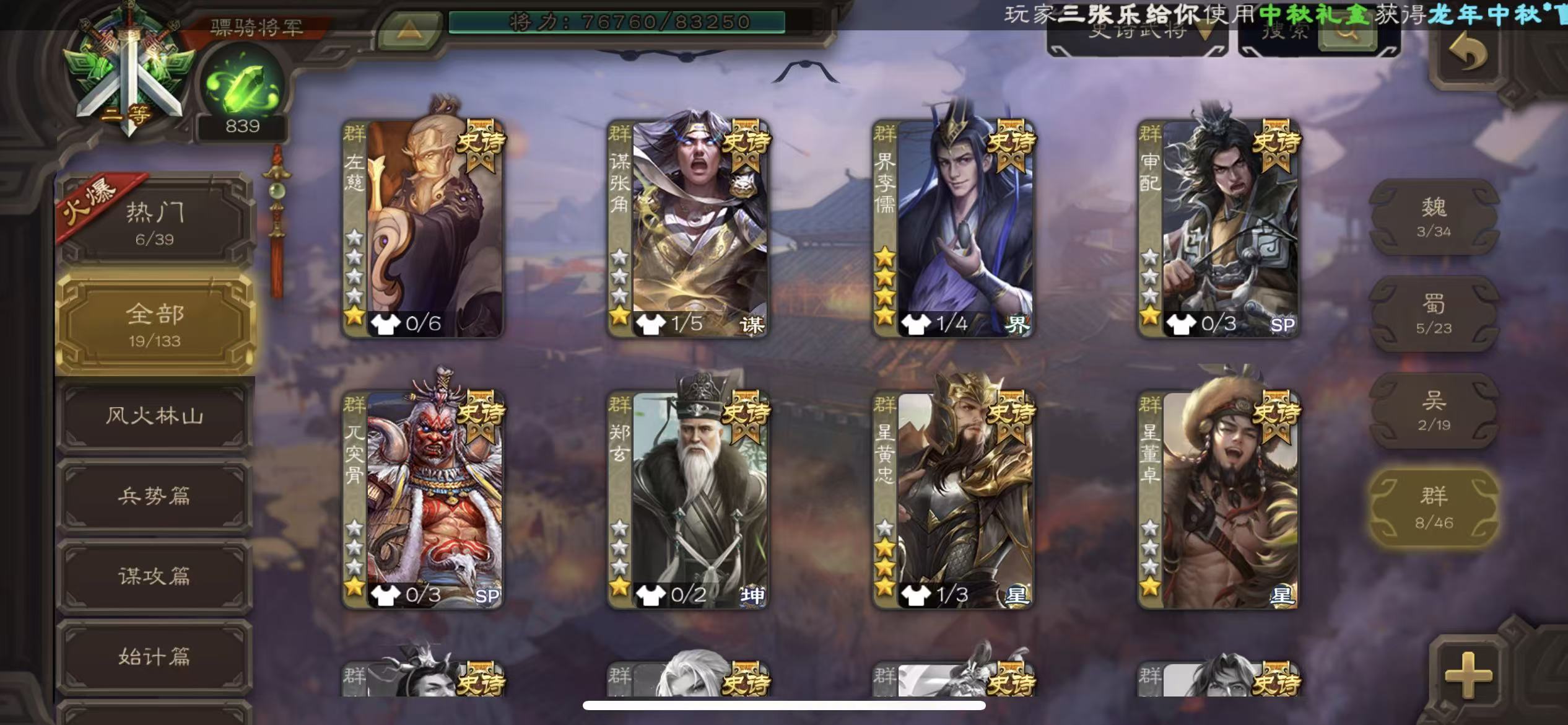二等骠骑动态大宝动态谋孙策动态神赵云动态动态谋张飞天子令曹丕界李儒19史诗
