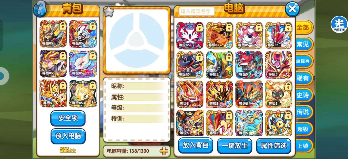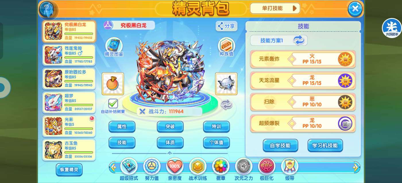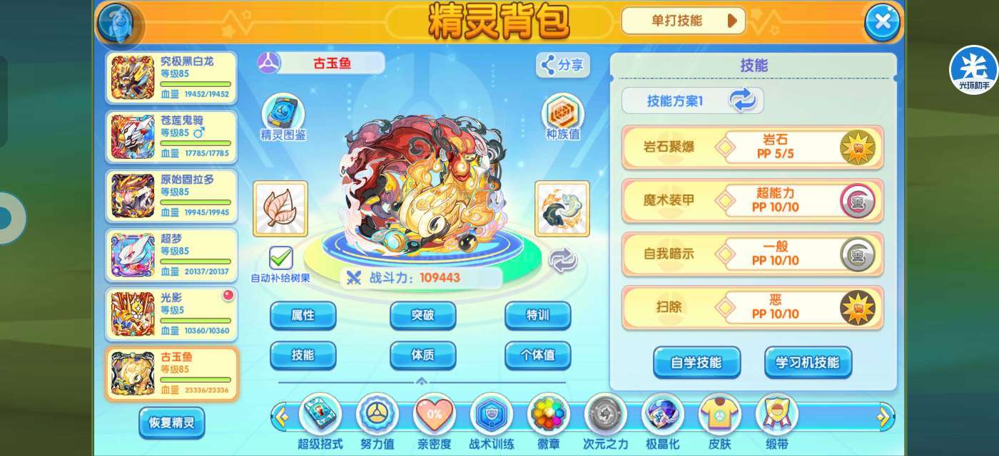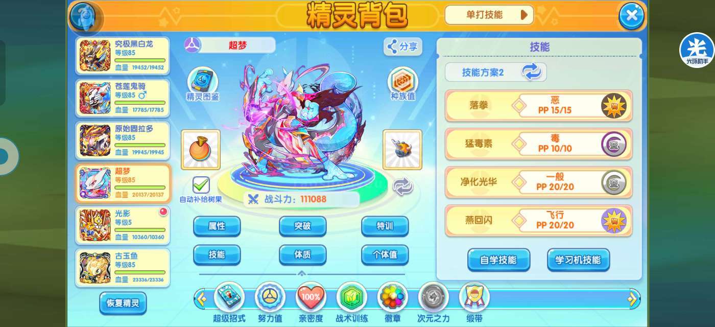安卓混服,麦驰85级火馆鬼骑超梦究极龙专属闪z古玉鱼古拉振翼发闪月各种闪光一堆,13w砖石