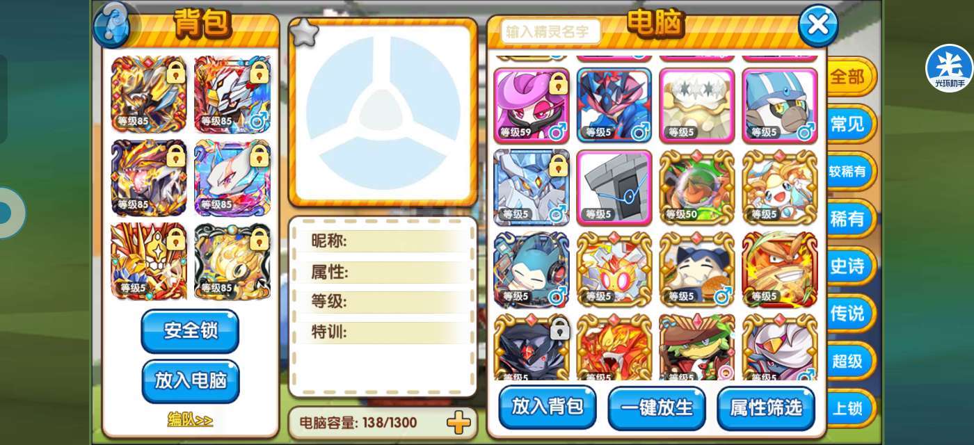 口袋妖怪复刻【安卓官方】安卓混服,麦驰85级火馆鬼骑超梦究极龙专属闪z古玉鱼古拉振翼发闪月各种闪光一堆,13w砖石