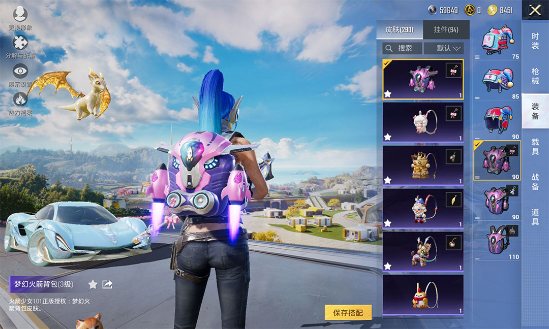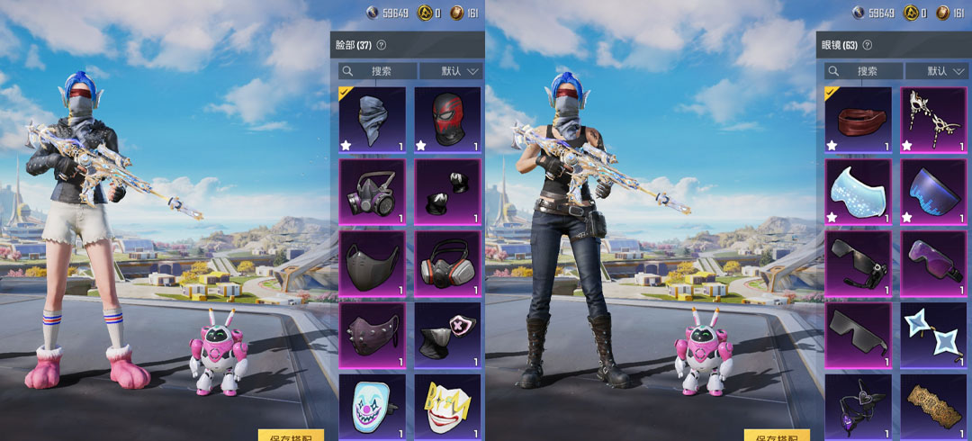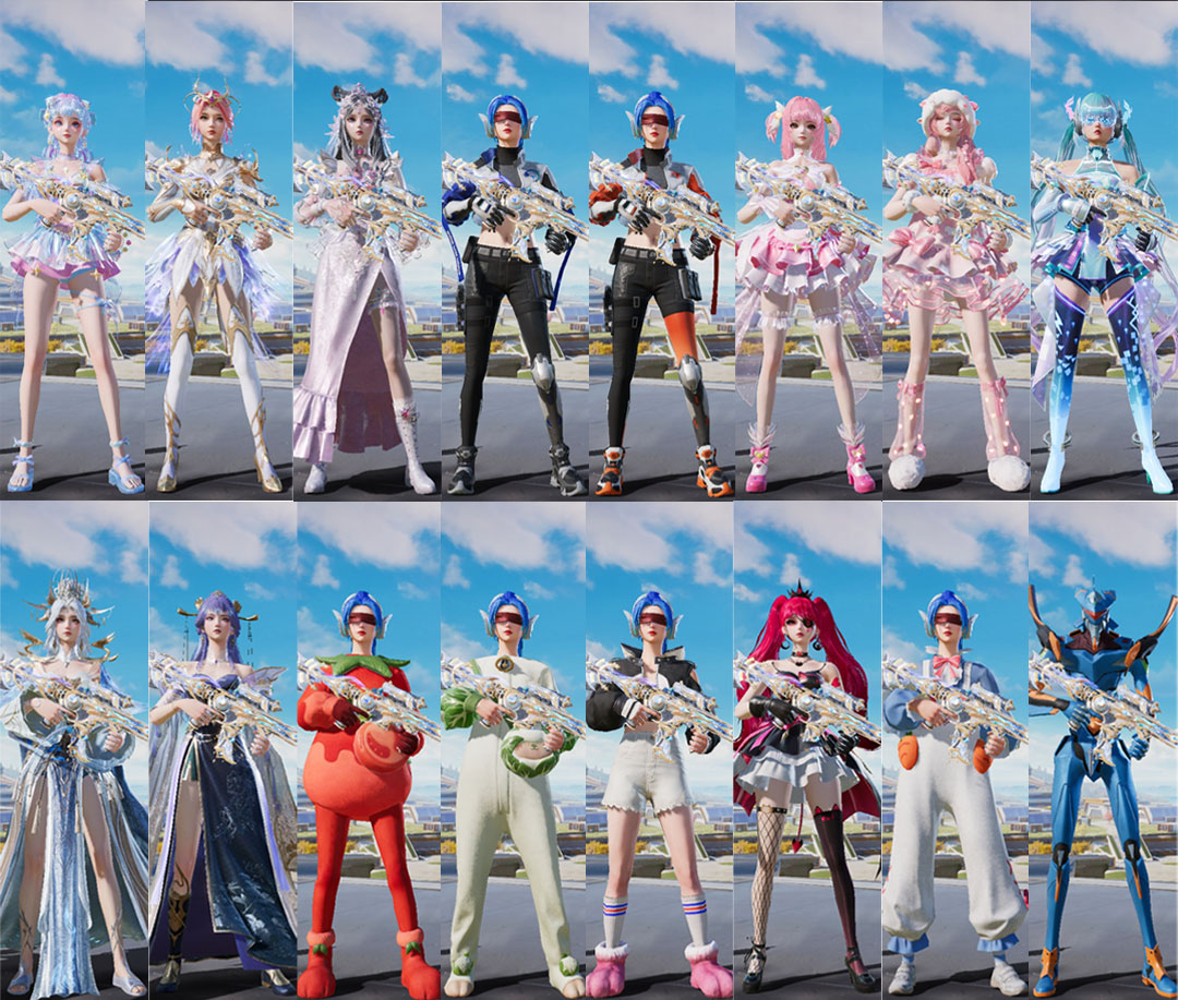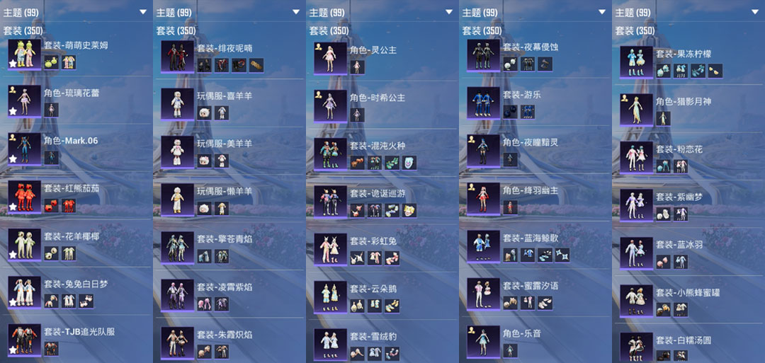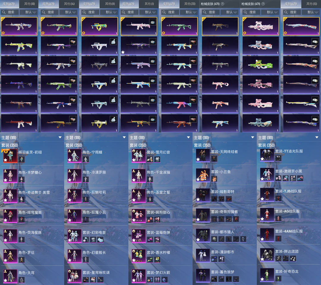 紫装: 都市猎人,天网终结者,兔兔白日梦,TJB追光队服,TT追光队服,小丑鱼,蓝蚂蚱,红熊茄茄,花样椰椰,激萌罗小黑,胖达团团,好奇恐龙,暗影哥特,奇异狩猎者,