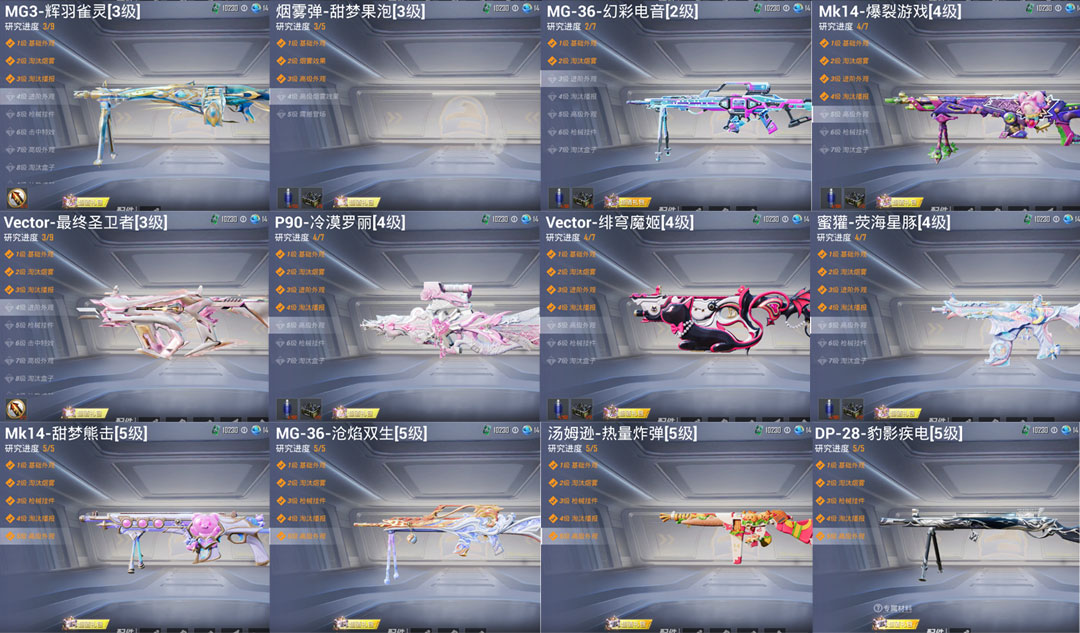 粉装20:梦幻火箭,狂魅哈莉,狂魇小丑,幻彩电音,,冷漠罗丽,奇迹舞步 美雪,星穹咏叹调,绯穹魔姬,宁雨蝶,天穹,罗征,羊梦糖心,幻星舰长,雪月幻音,荧海星豚,千金淑猫,飒粉甜心,蓝莓炮弹,圣堂之誓,香水柠檬,