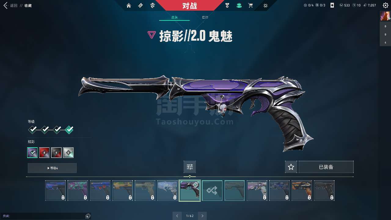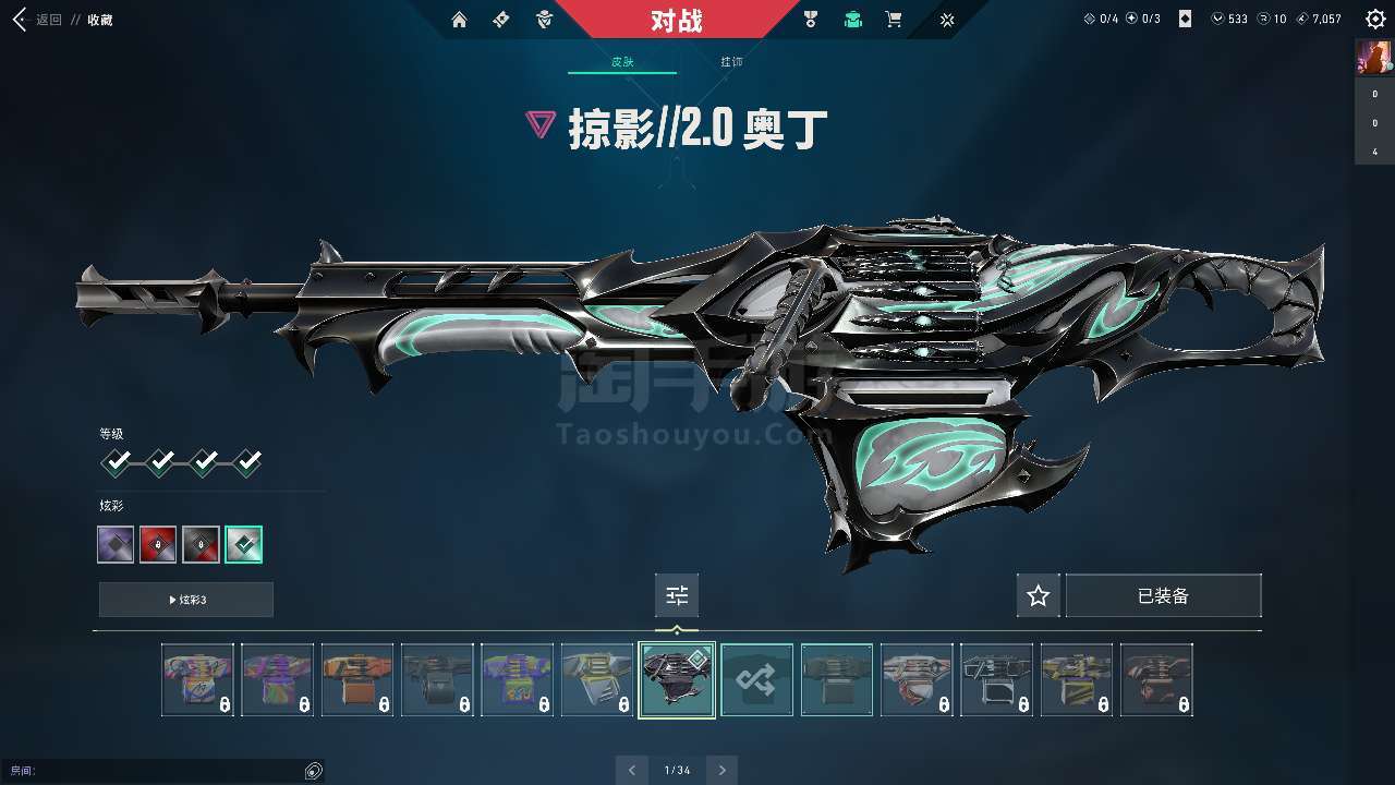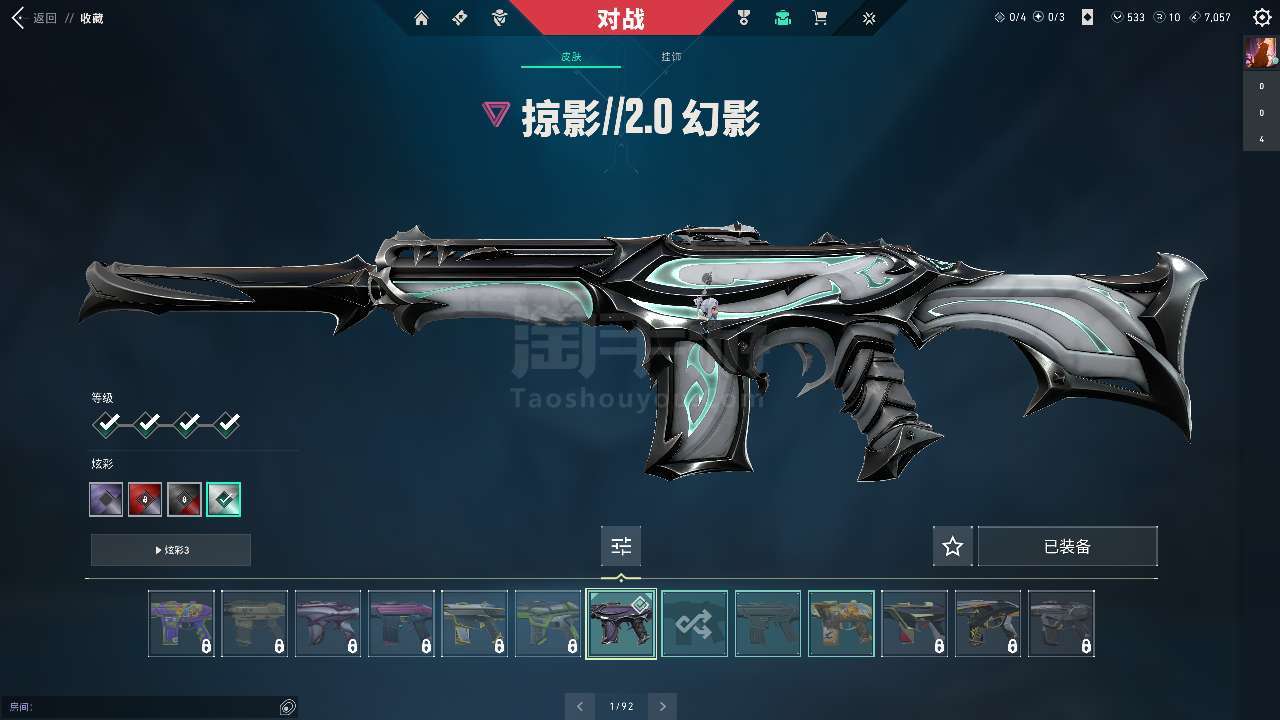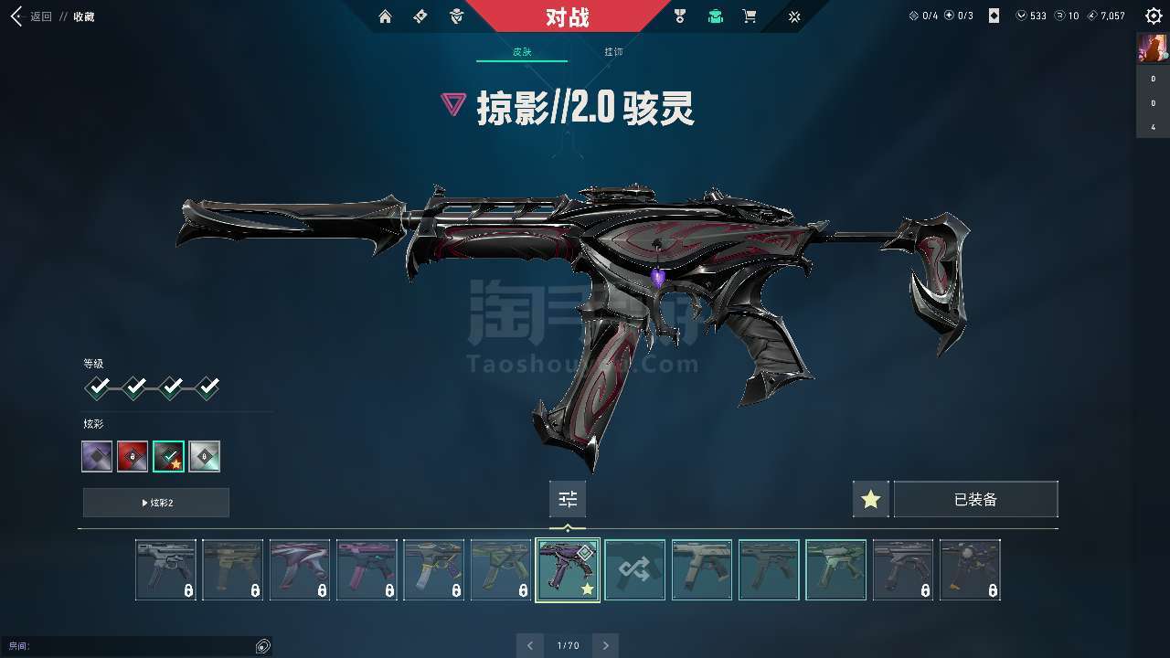每把枪基本都有一个超级好的皮肤升级枪刀都满级了主流颜色也都买了皮肤价值11520源晶还有385r点
