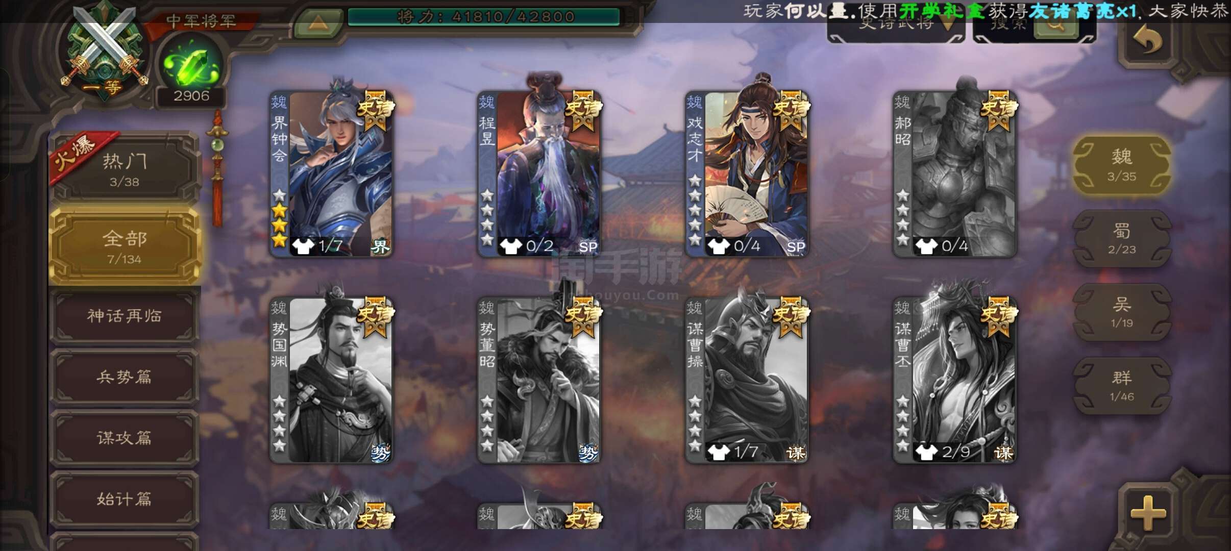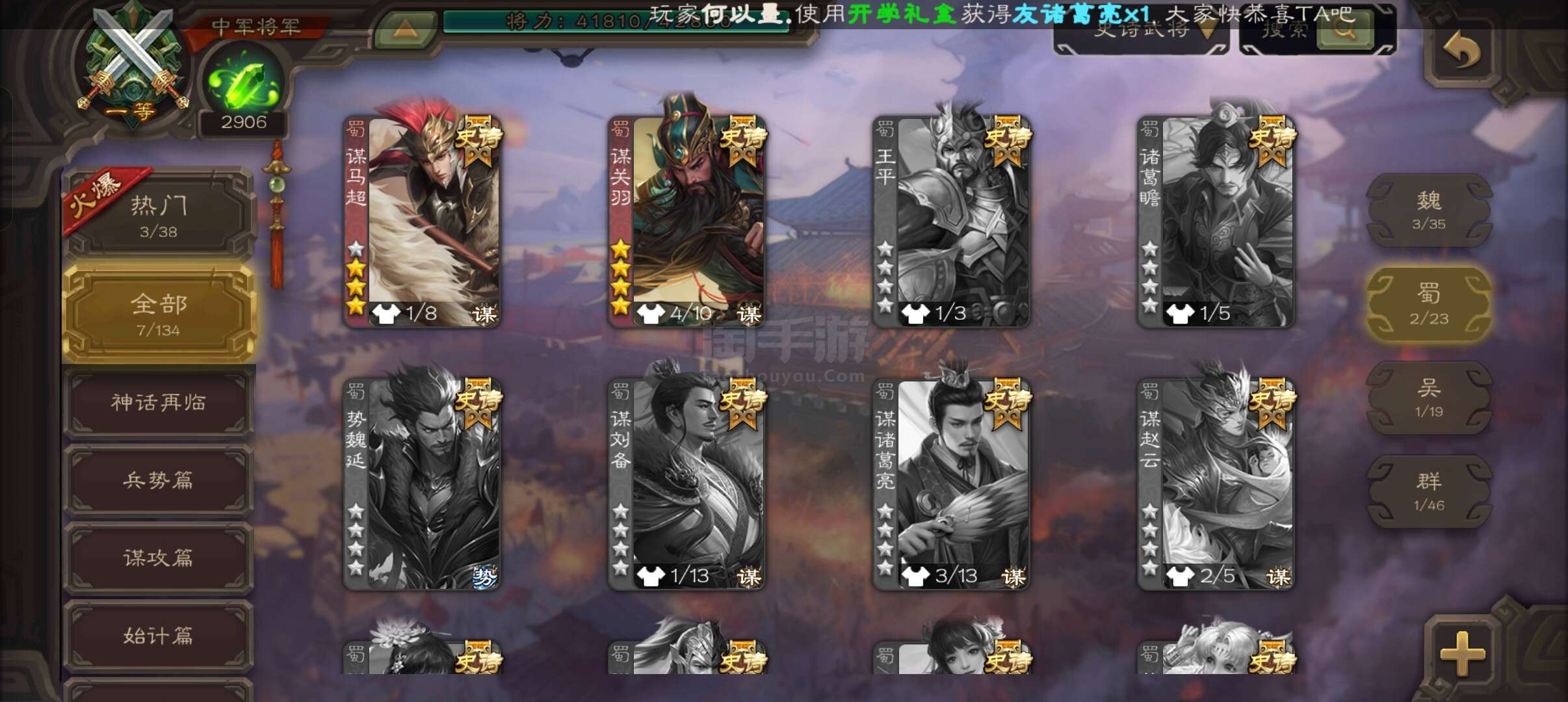 史诗武将数量: