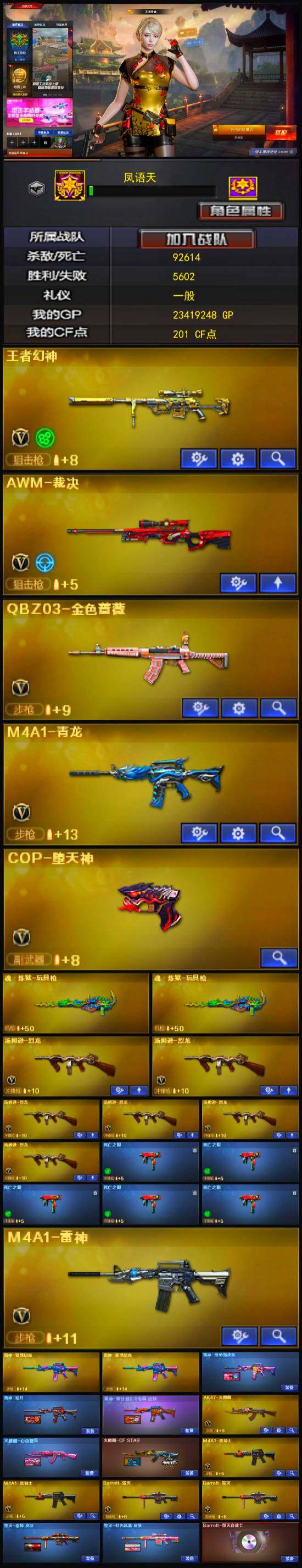 【热门武器】:QBZ03-金色蔷薇,M4A1-青龙,死亡之眼*5,M4A1-黑骑士*2,汤姆逊-烈龙*6,COP-堕天神