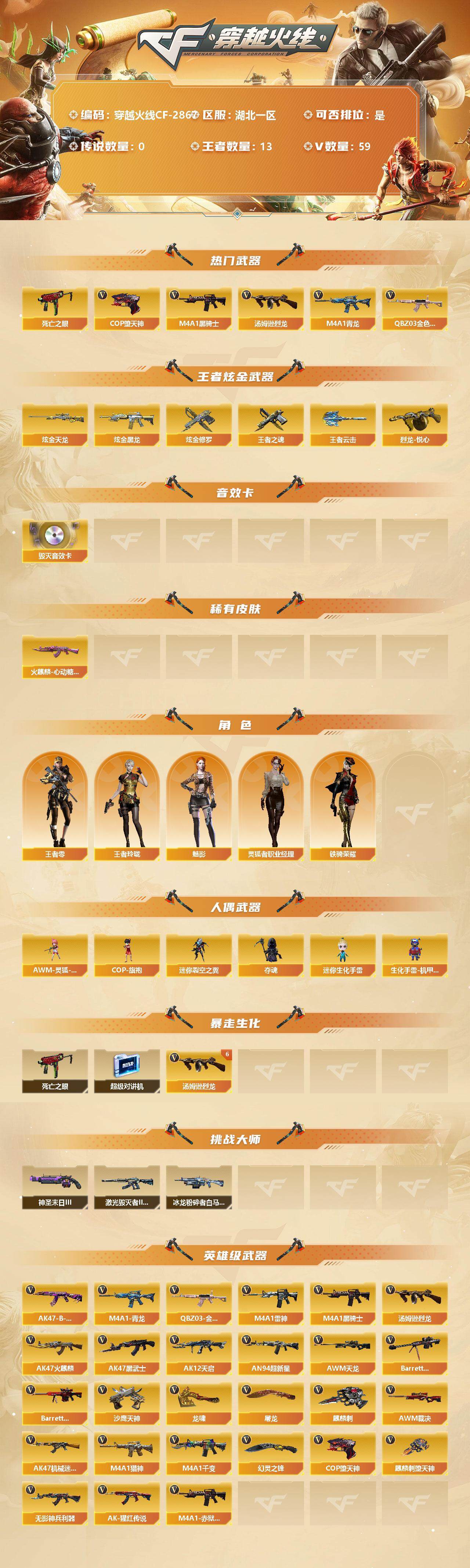 穿越火线(CF)【端游】【商品标题】:湖北一区-59V-13王者-4炫金