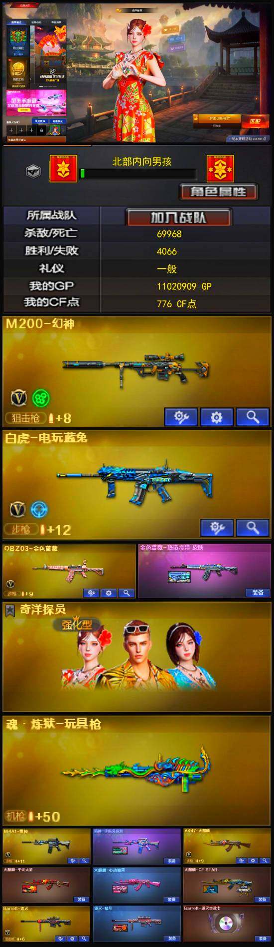 【热门武器】:QBZ03-金色蔷薇,M200-幻神,白虎-电玩蓝兔,羊驼玩偶,沙鹰-修罗