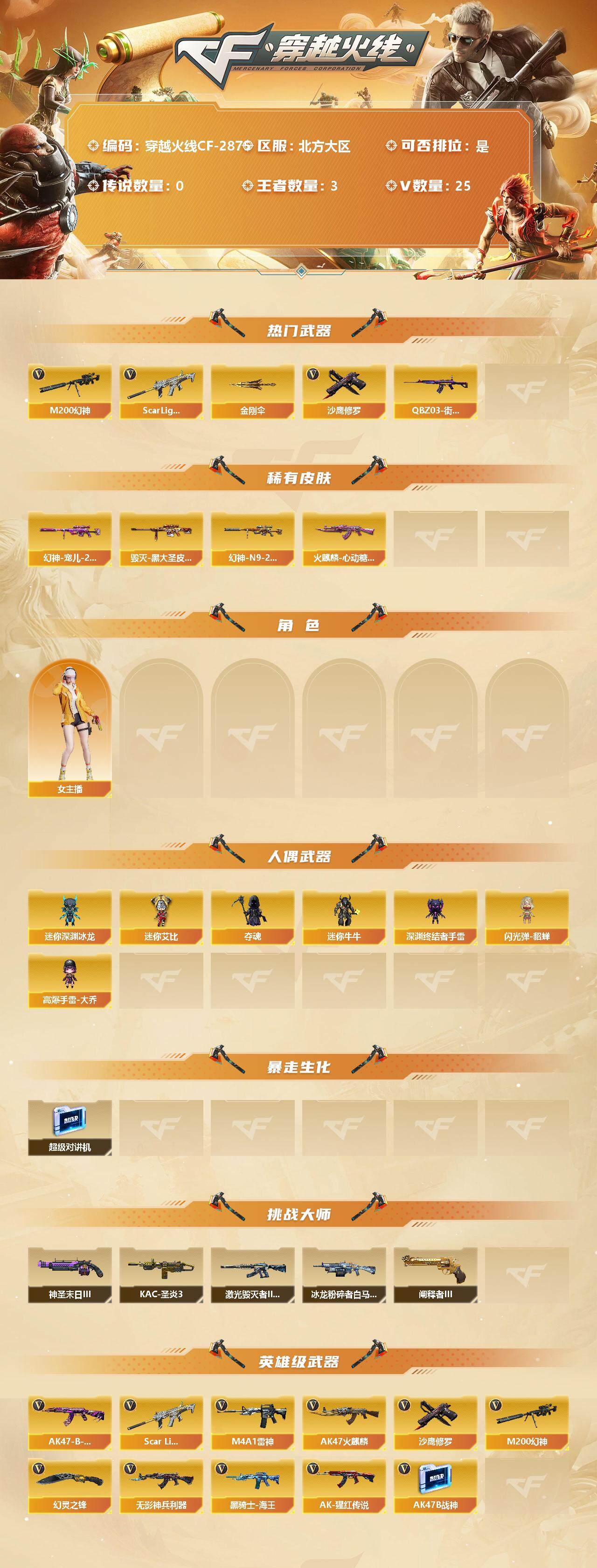 穿越火线(CF)【端游】【商品标题】:北方大区-25V-3王者-0炫金