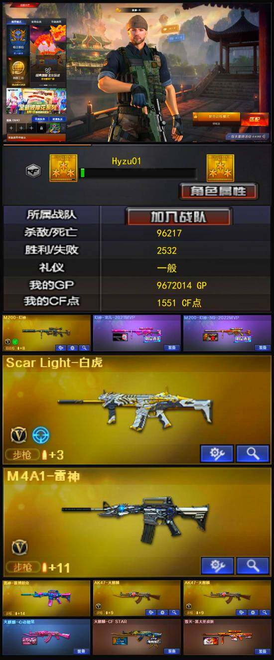 【热门武器】:Scar Light-白虎,M200-幻神,QBZ03-街机,沙鹰-修罗*2,金刚伞