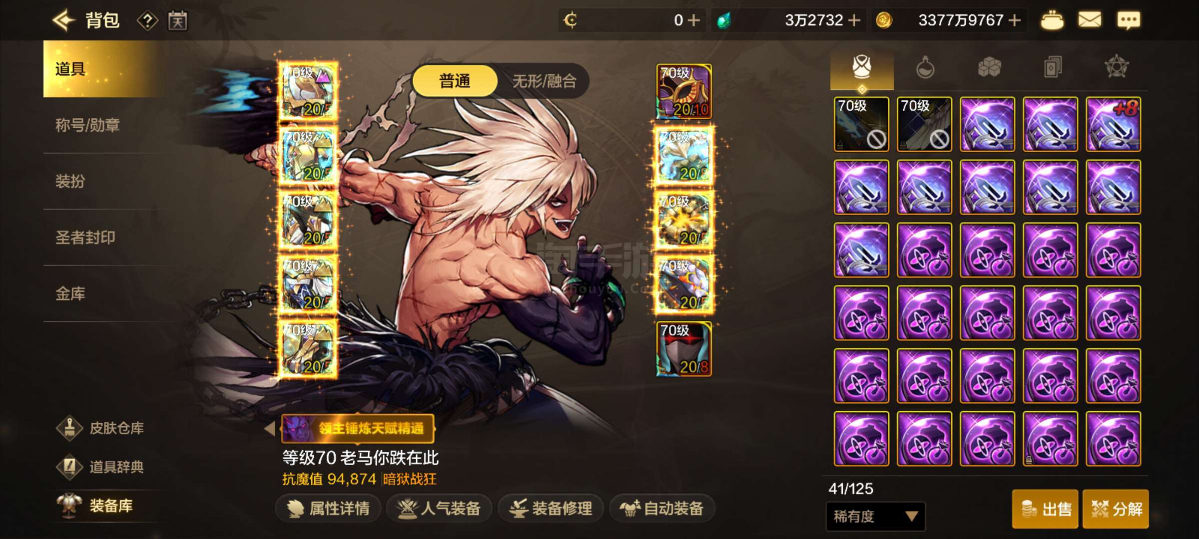 9.48万抗魔狂战 细节如图 刚魂 乌龟➕圣灵 肉的一批 真理套4等1 有个8的武器胚子