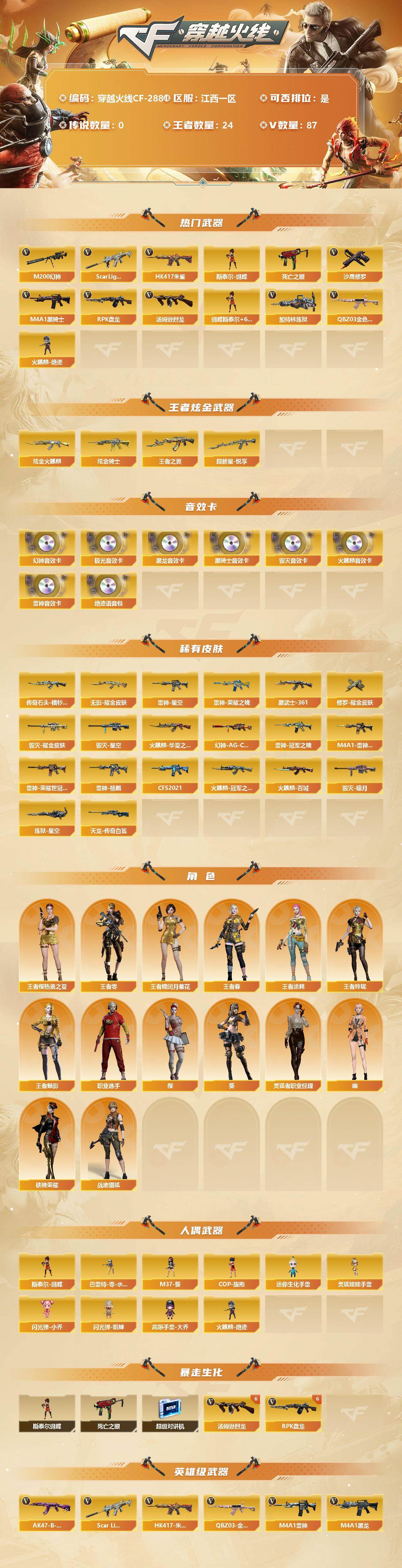 穿越火线(CF)【端游】【商品标题】:江西一区-87V-24王者-3炫金