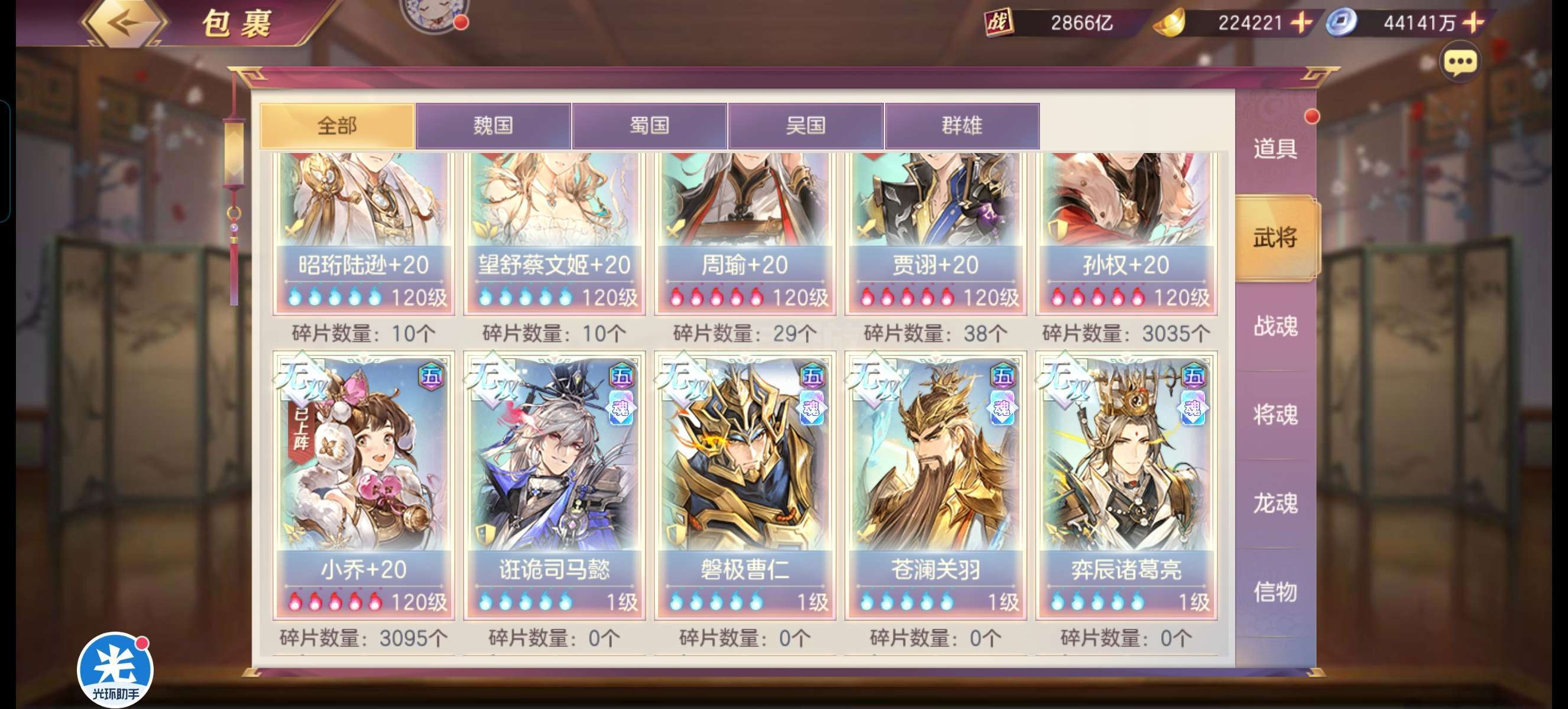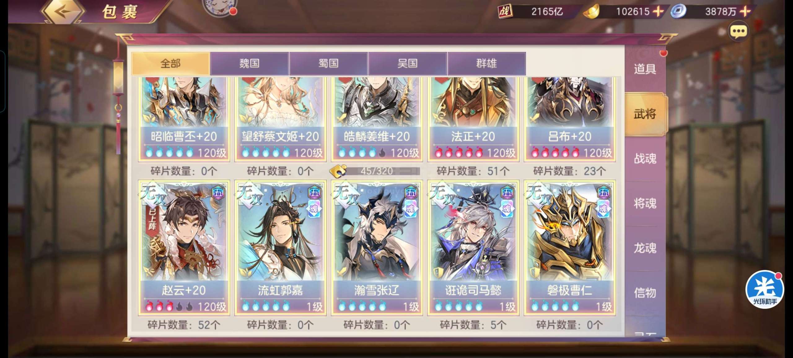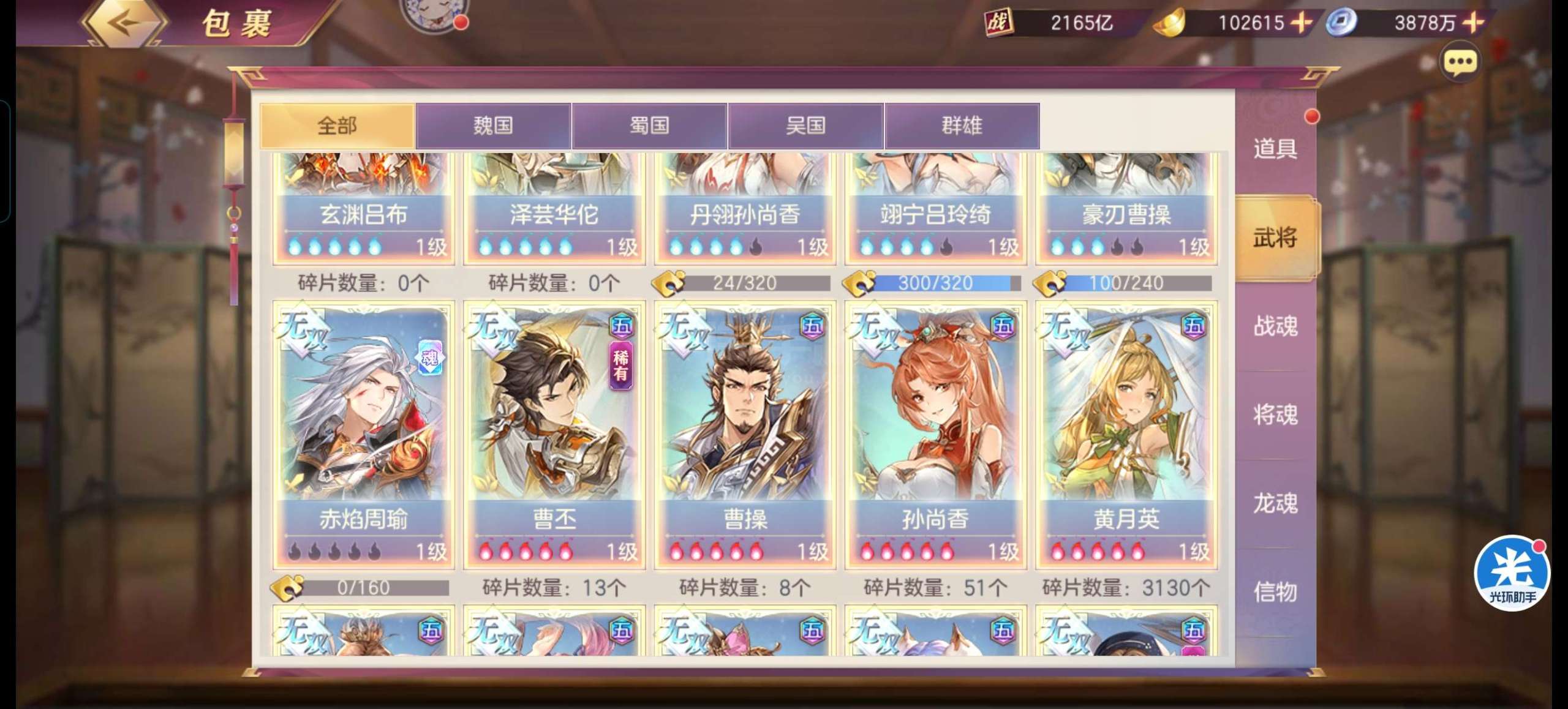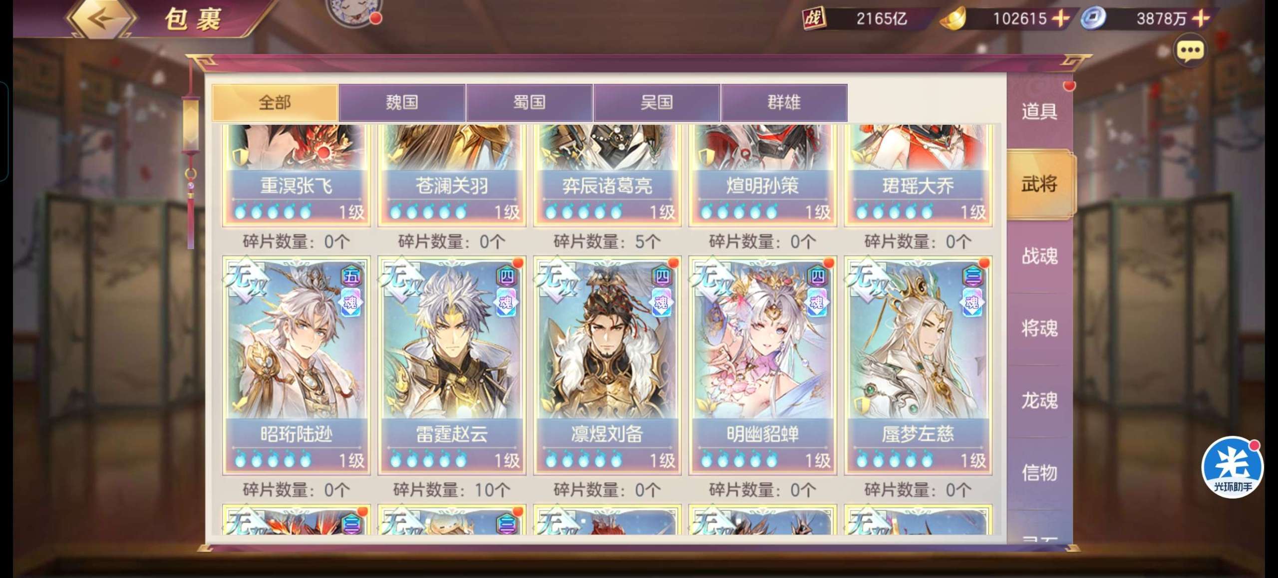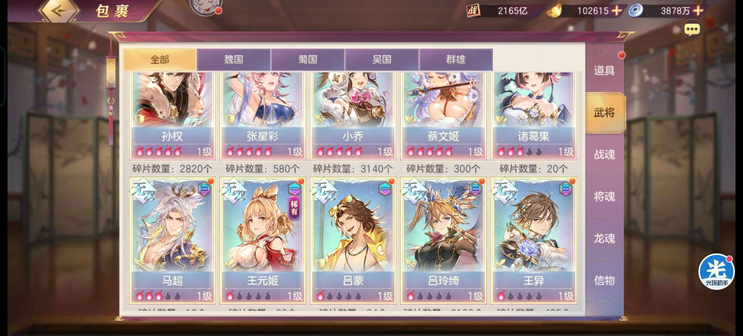 三国志幻想大陆【安卓官方】2165亿,五火最新魂将曹丕,四火姜维,快五火小吕,五火蔡文姬带皮肤,背包海量资源,还有个龙魂水晶,