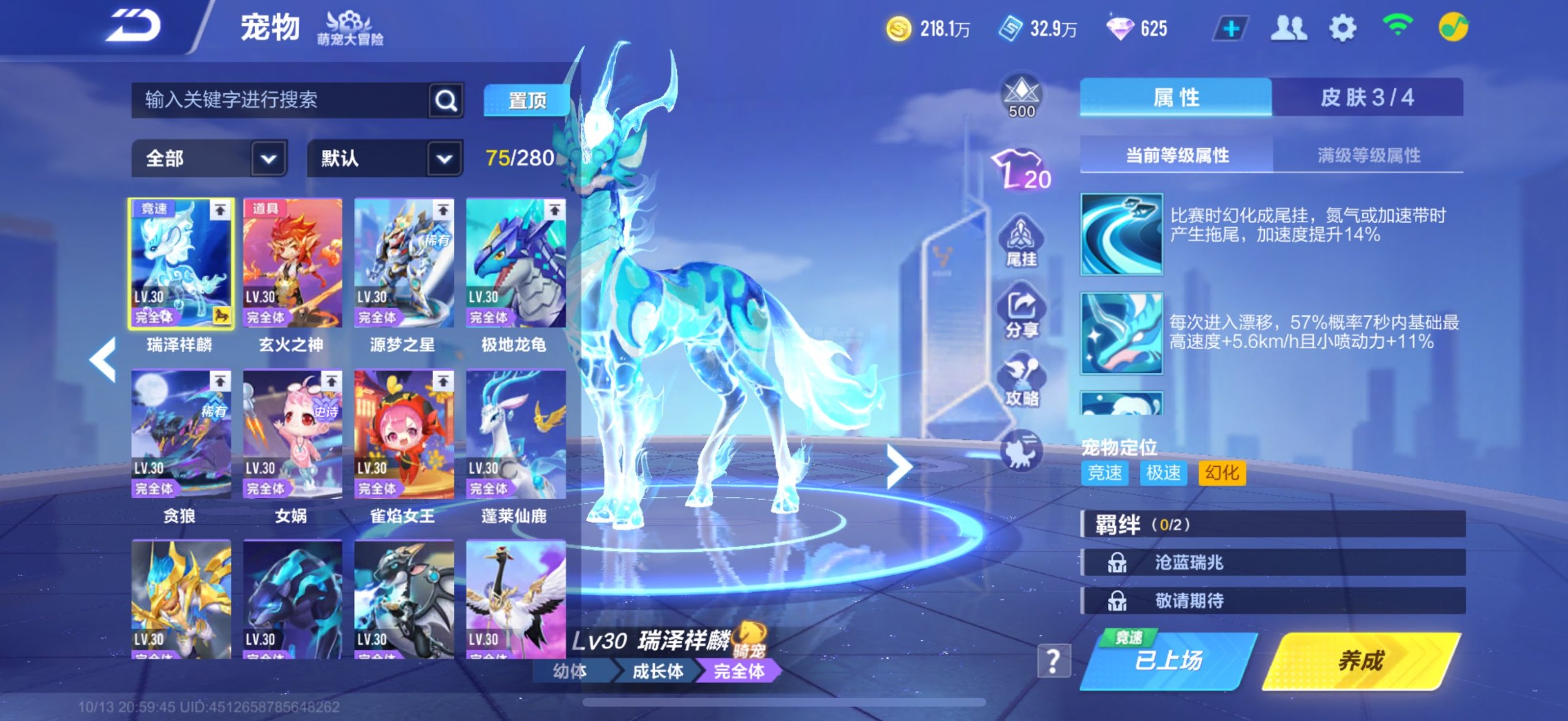 QQ飞车手游【苹果QQ】贵13有6T7阶哈雷特7联赛麒麟宠物魔法套带王者V10有428个皮肤