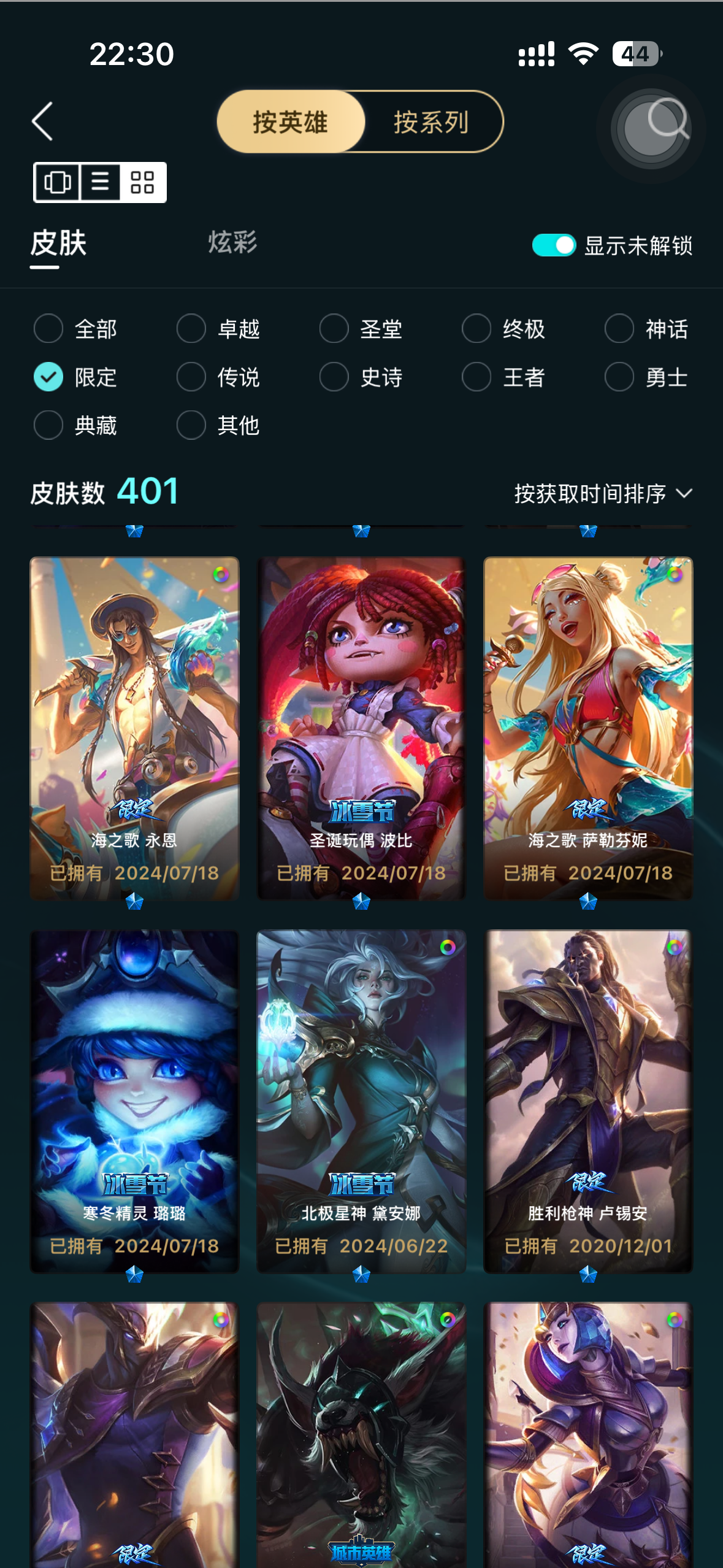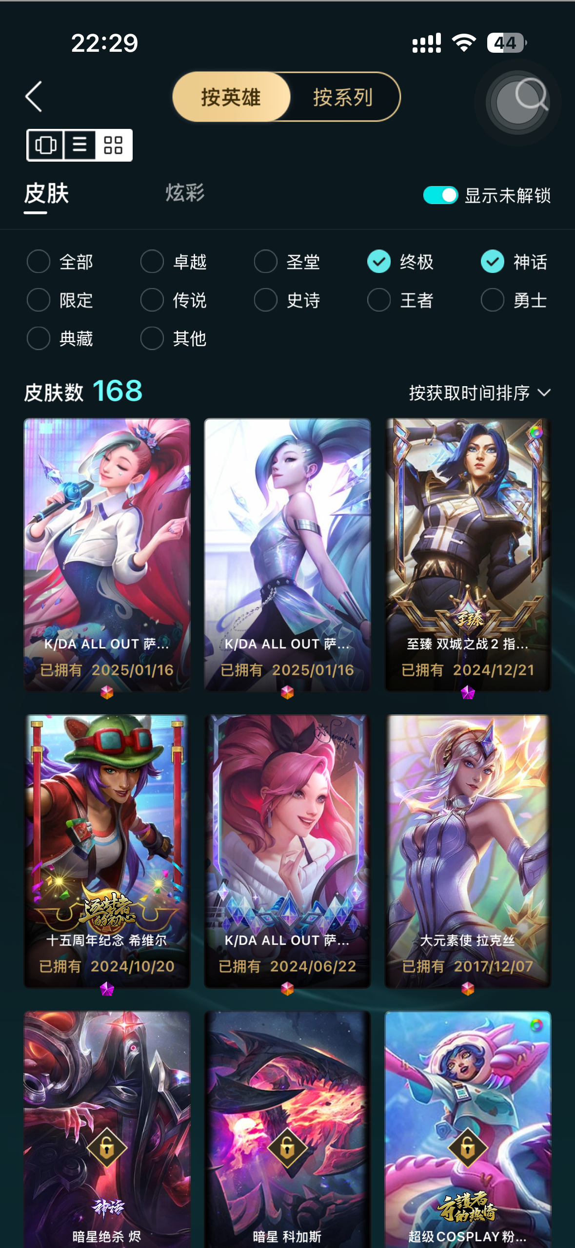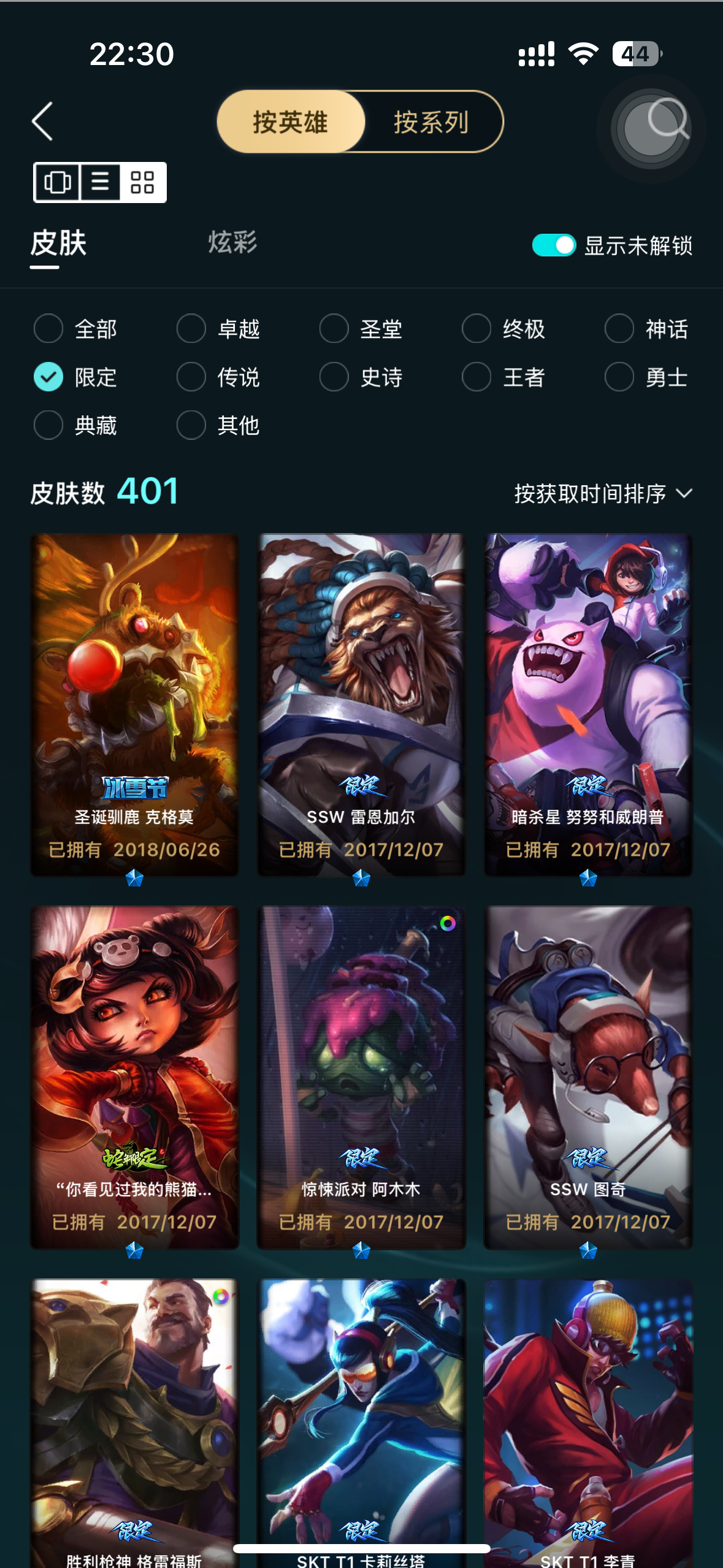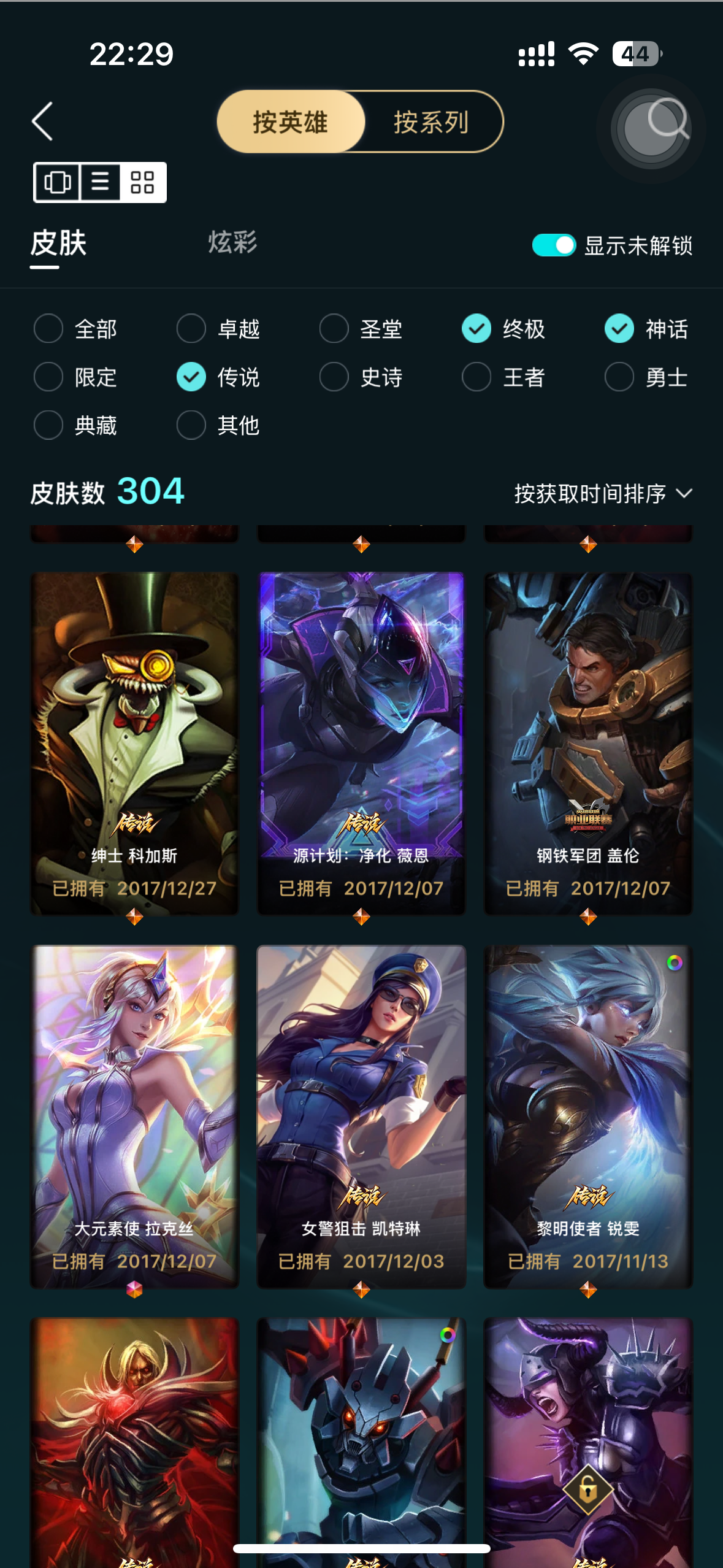 英雄联盟【端游】限定43个,神话2个,终极2个。自带炫舞西南一400级