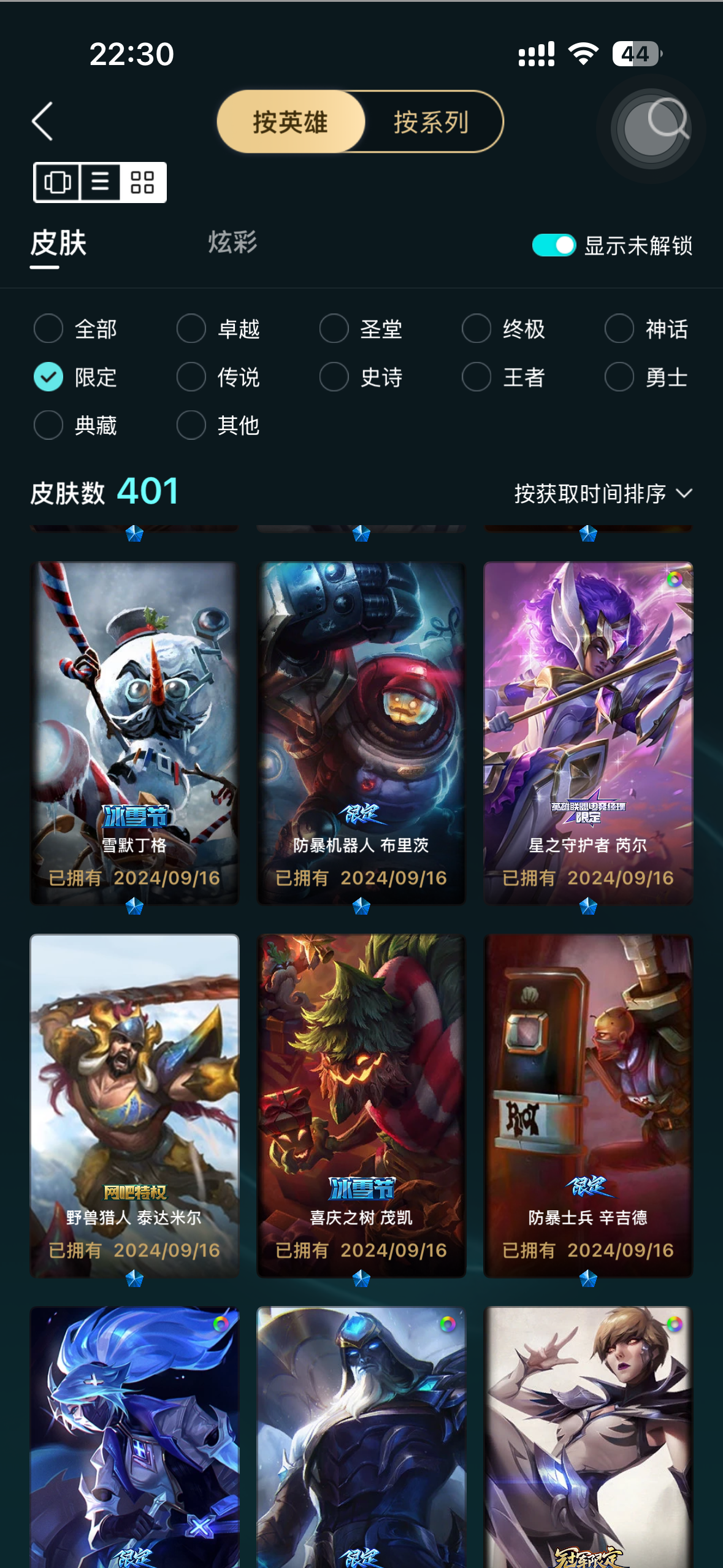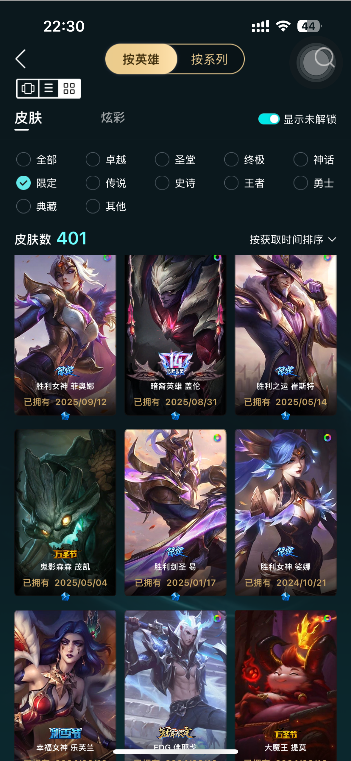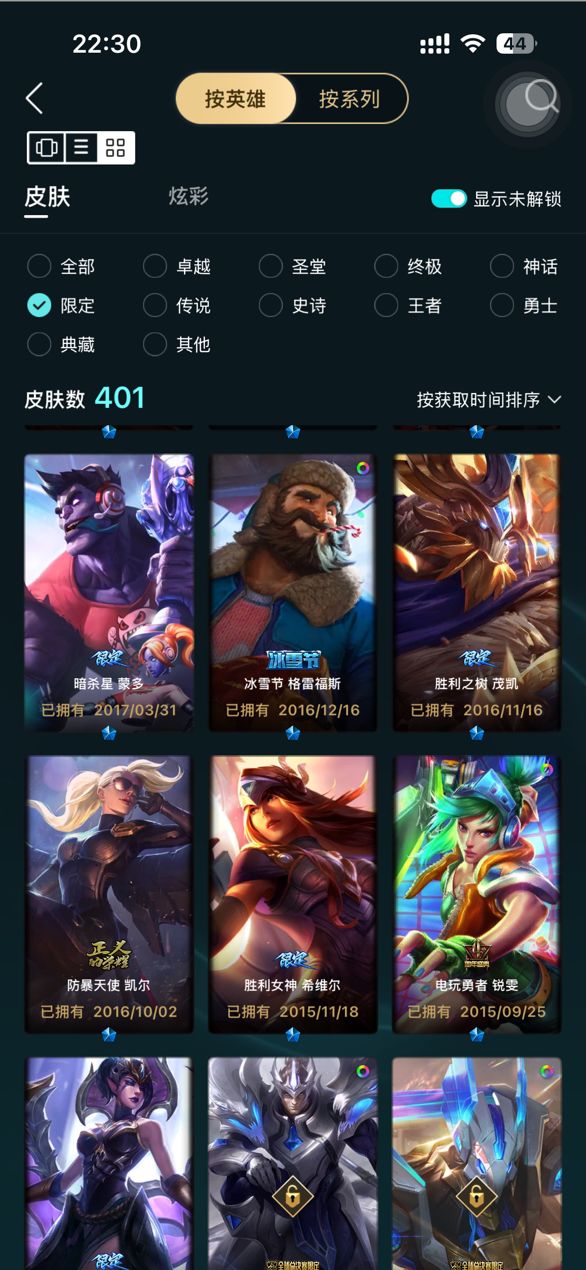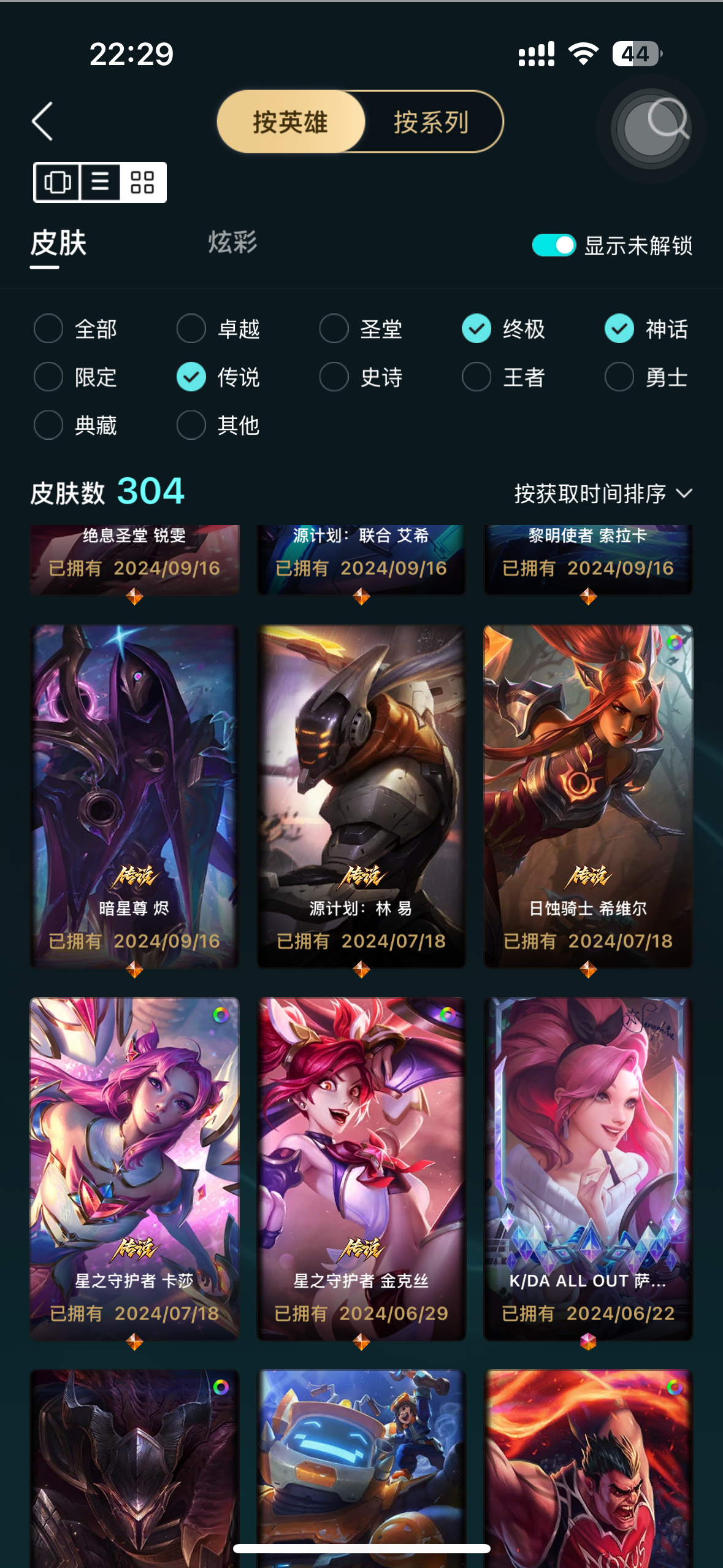 英雄联盟【端游】限定43个,神话2个,终极2个。自带炫舞西南一400级