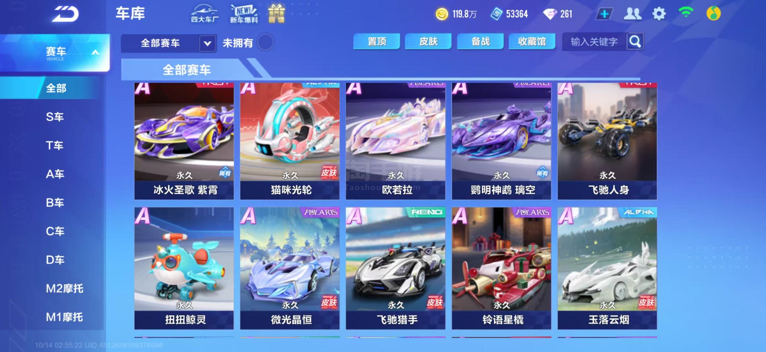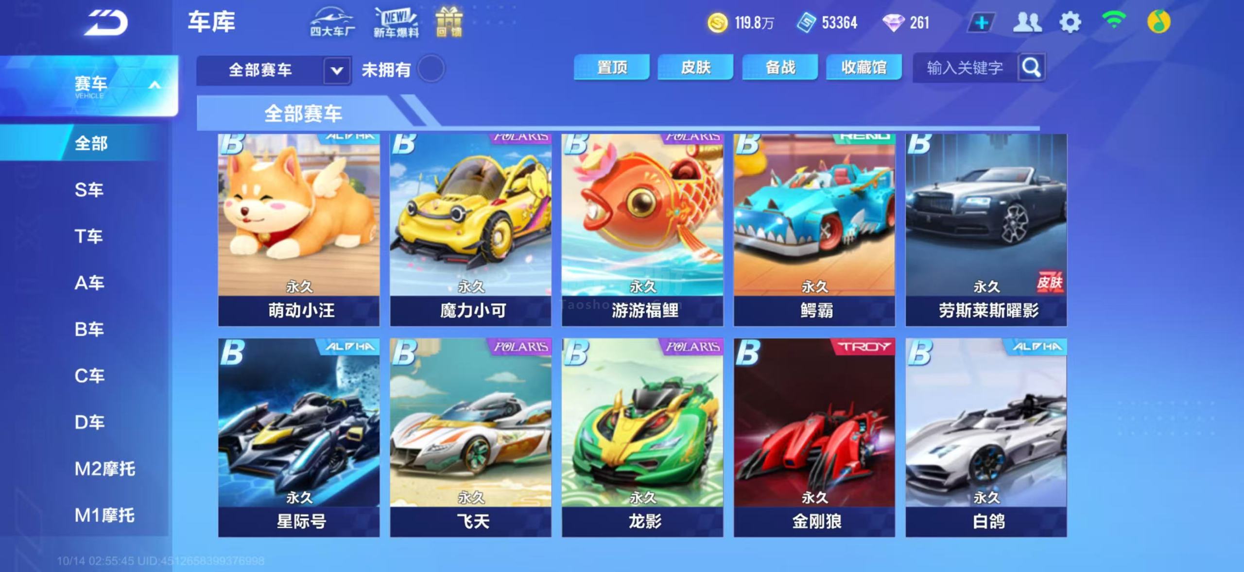 v13,皮肤多,a车多,衣服多,宠物抽奖道具多