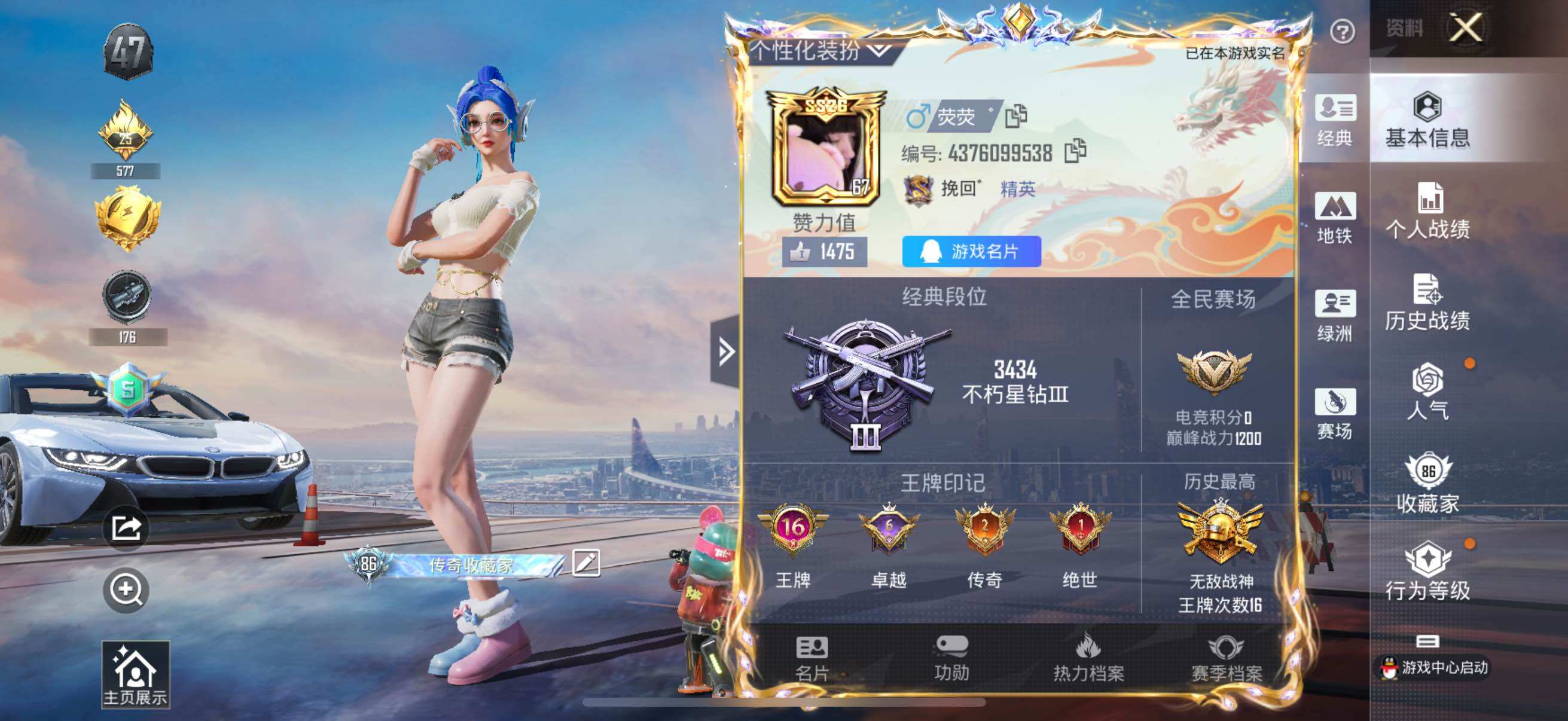 和平精英【苹果QQ】【女战神号 战神框 粉玛莎 新101 甜心三姐妹 洛天依 第五大道 童趣 满级