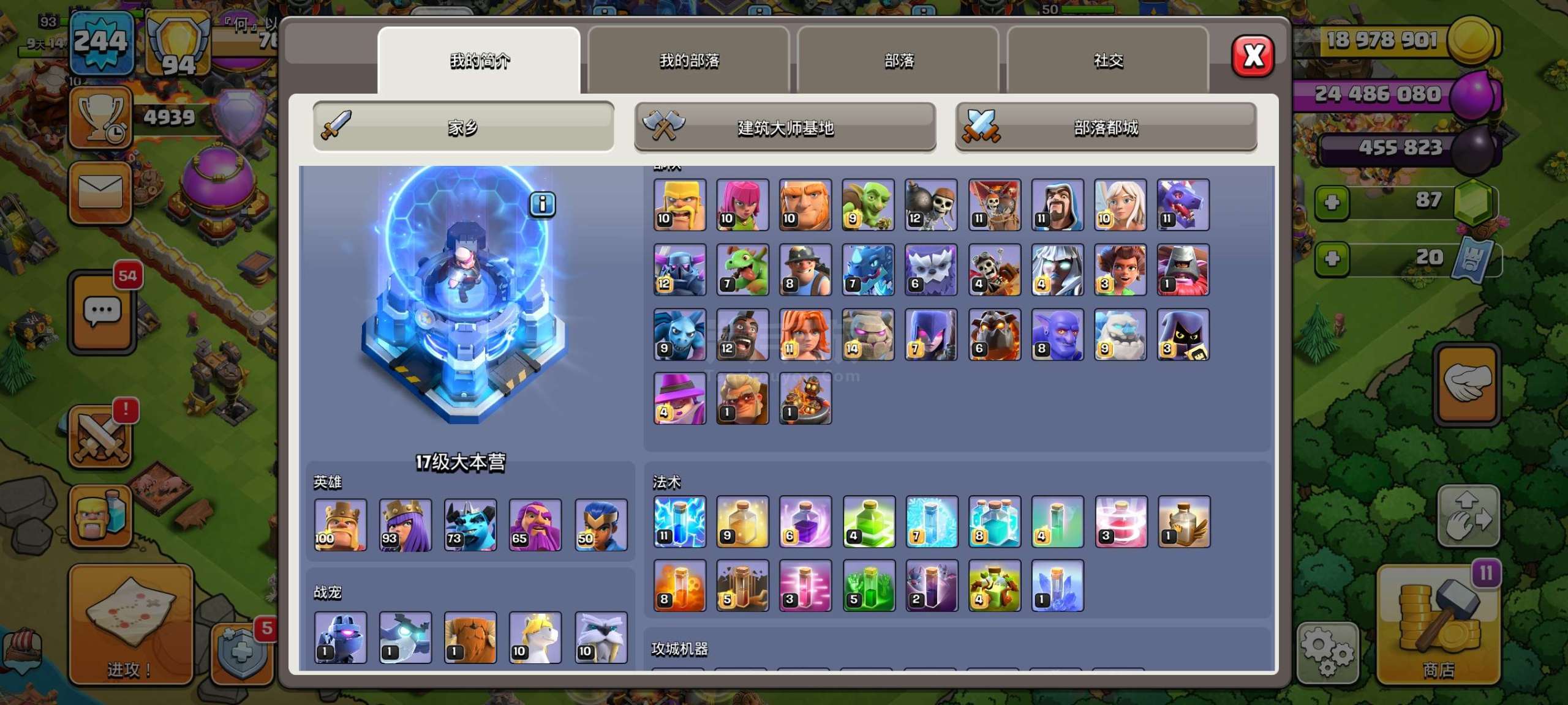 部落冲突【安卓QQ】17本后期,看图,不要了上班了