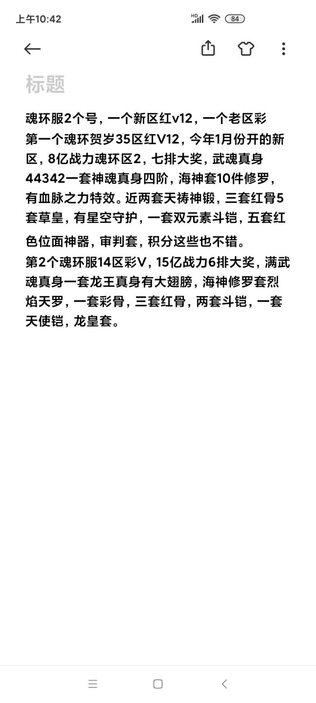 斗罗大陆H5【安卓其他】两个号连体,贺岁35新区V12,魂环14老区彩