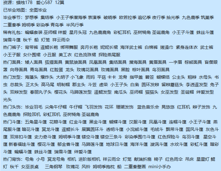 毕业季节:梦想季 集结季 小王子季潜海季 表演季 破晓季 欧若拉季 追忆季 夜行季 拾光季 九色鹿季 筑巢季 二重奏季 姆明季 彩染季 青鸟季 半风行季