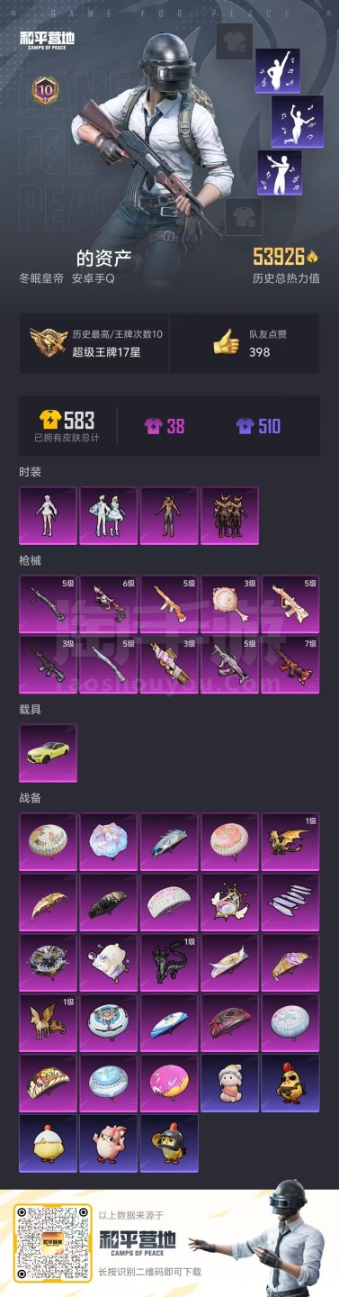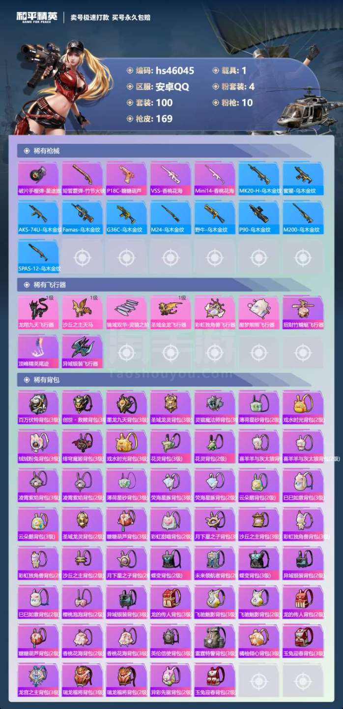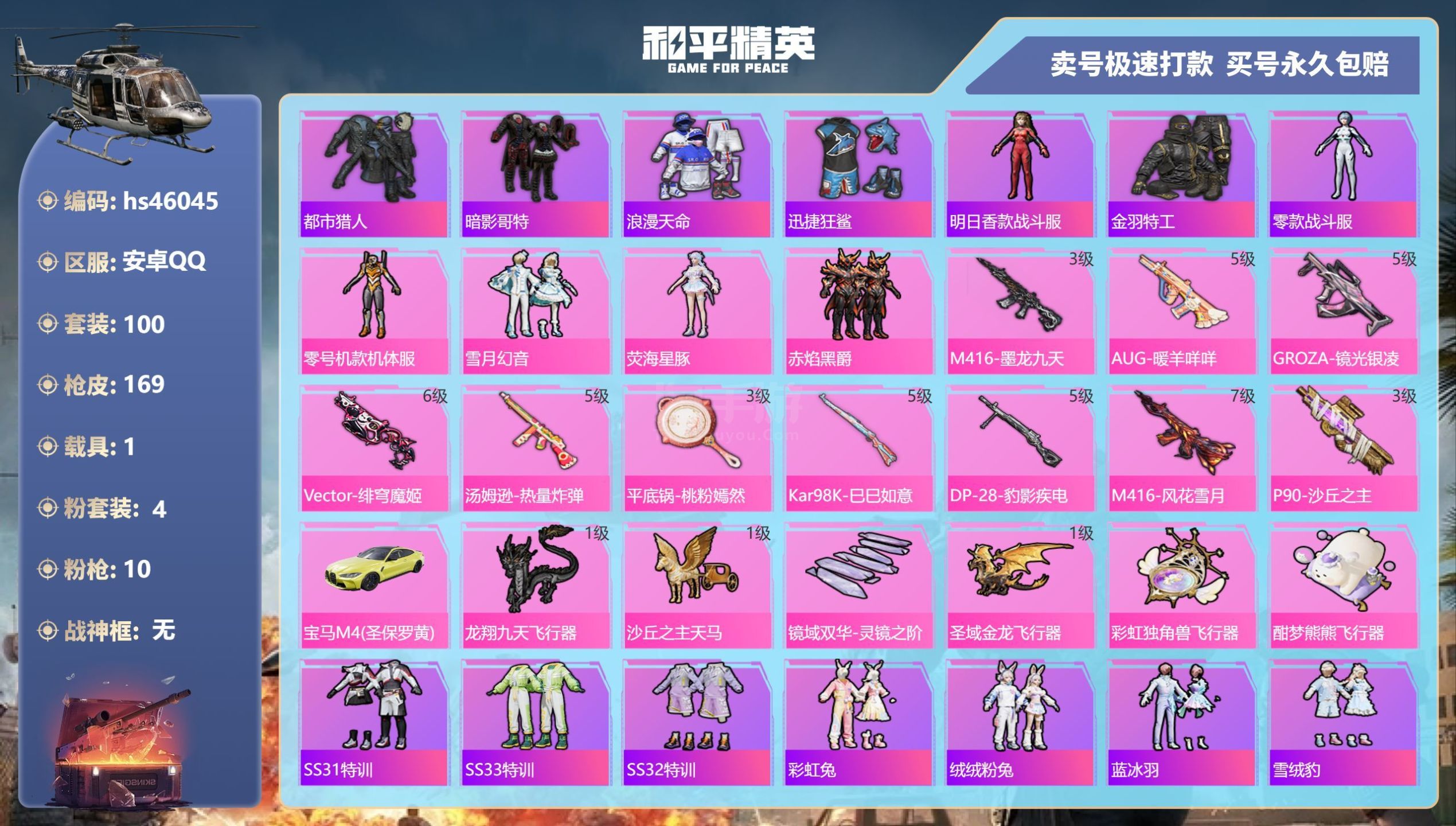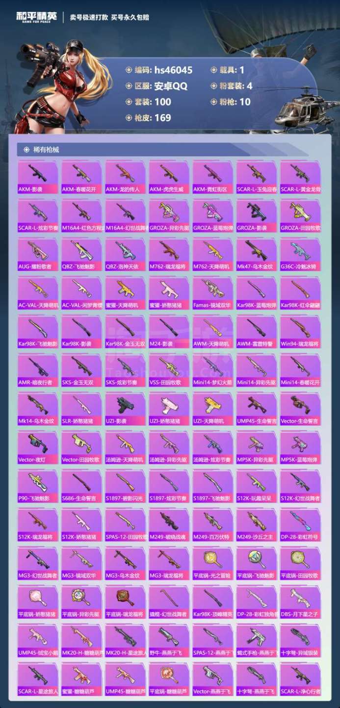 hs46045 安卓手Q-10王牌印记-4粉装-10特效枪-1载具-53926热力值-100套装-1