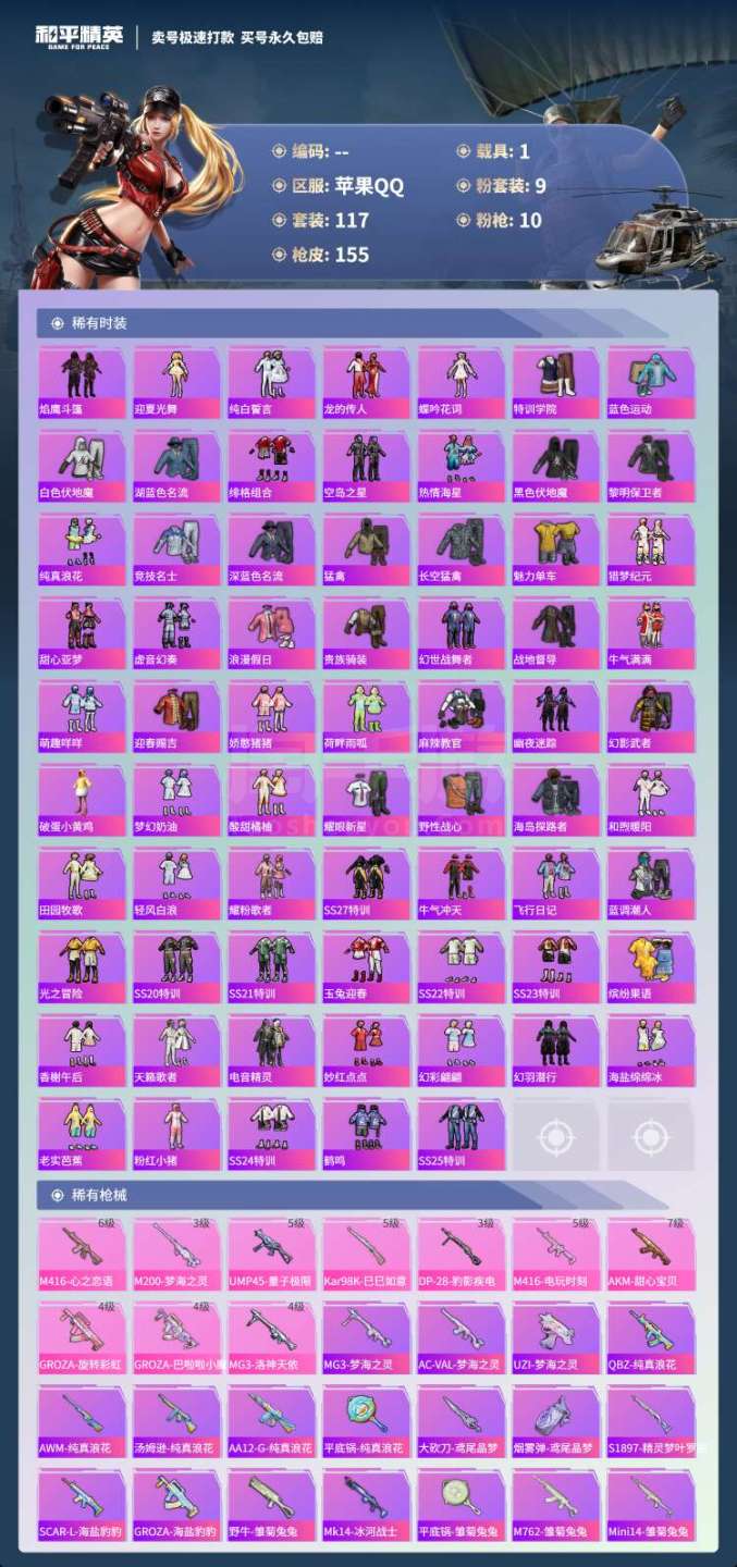 hs39828 苹果手Q-12王牌印记-9粉装-10特效枪-1载具-59314热力值-117套装-1