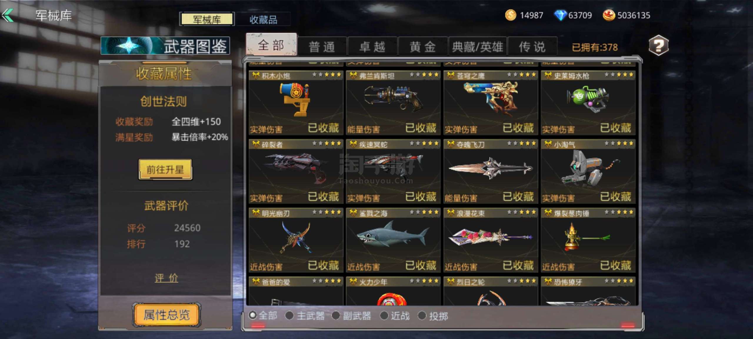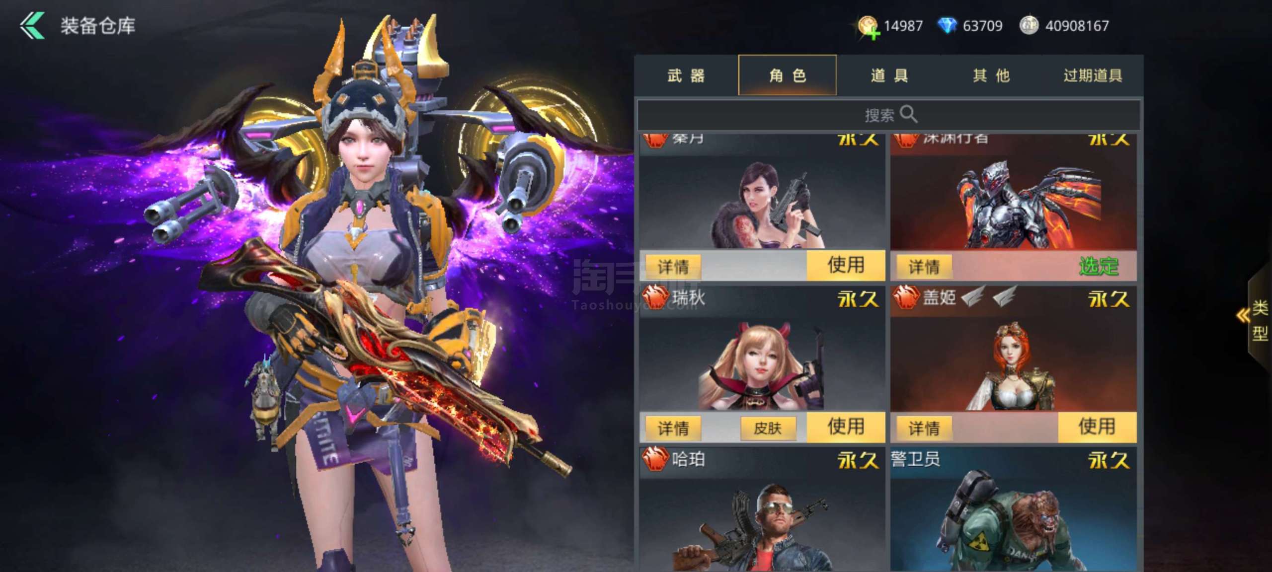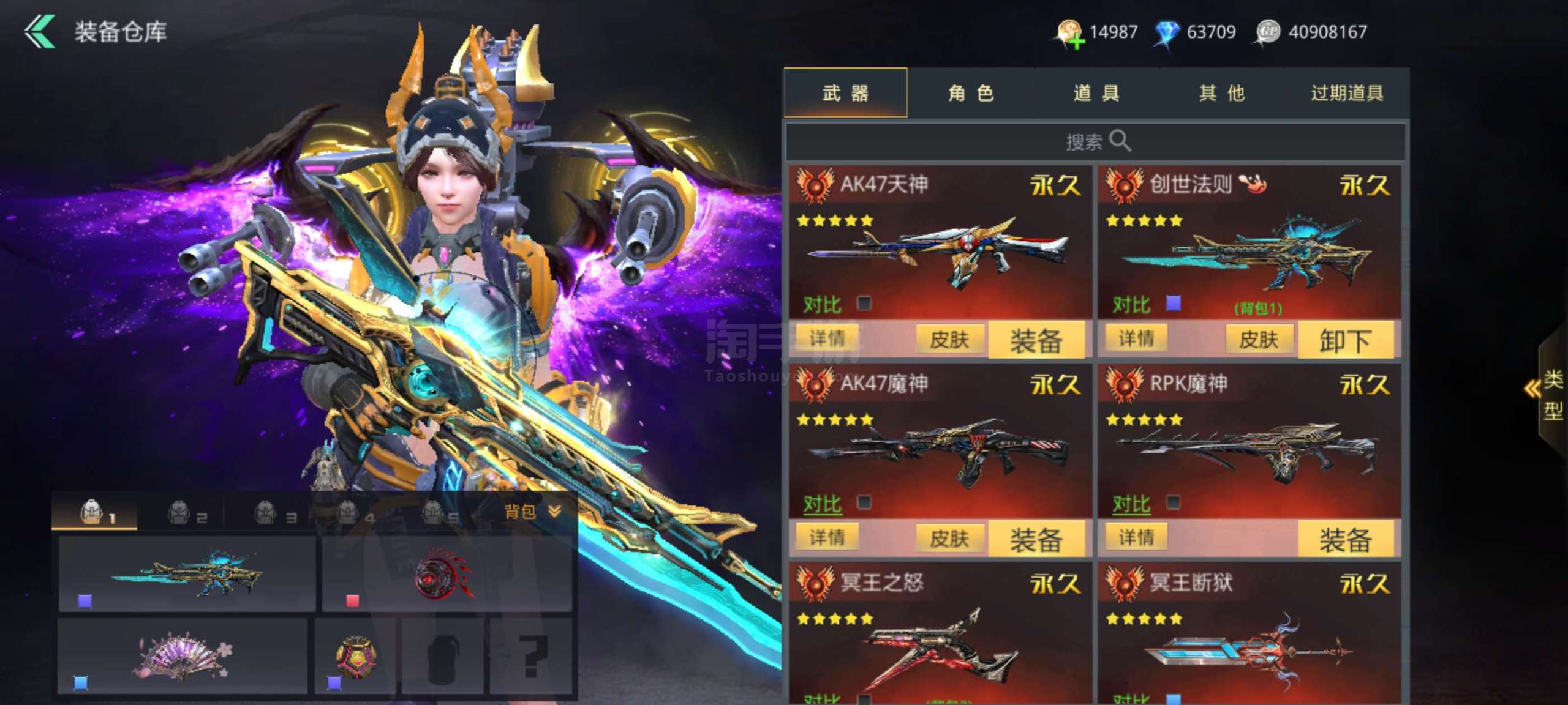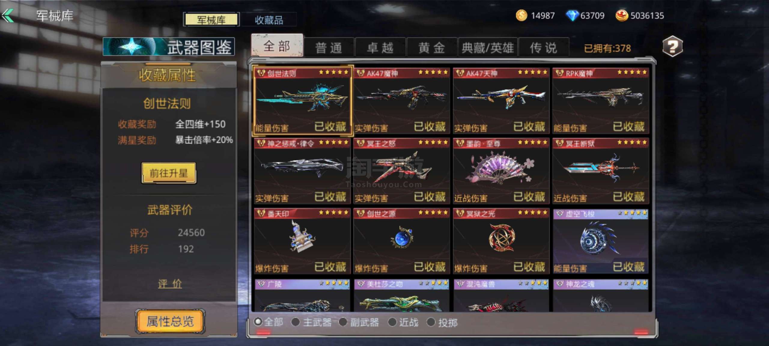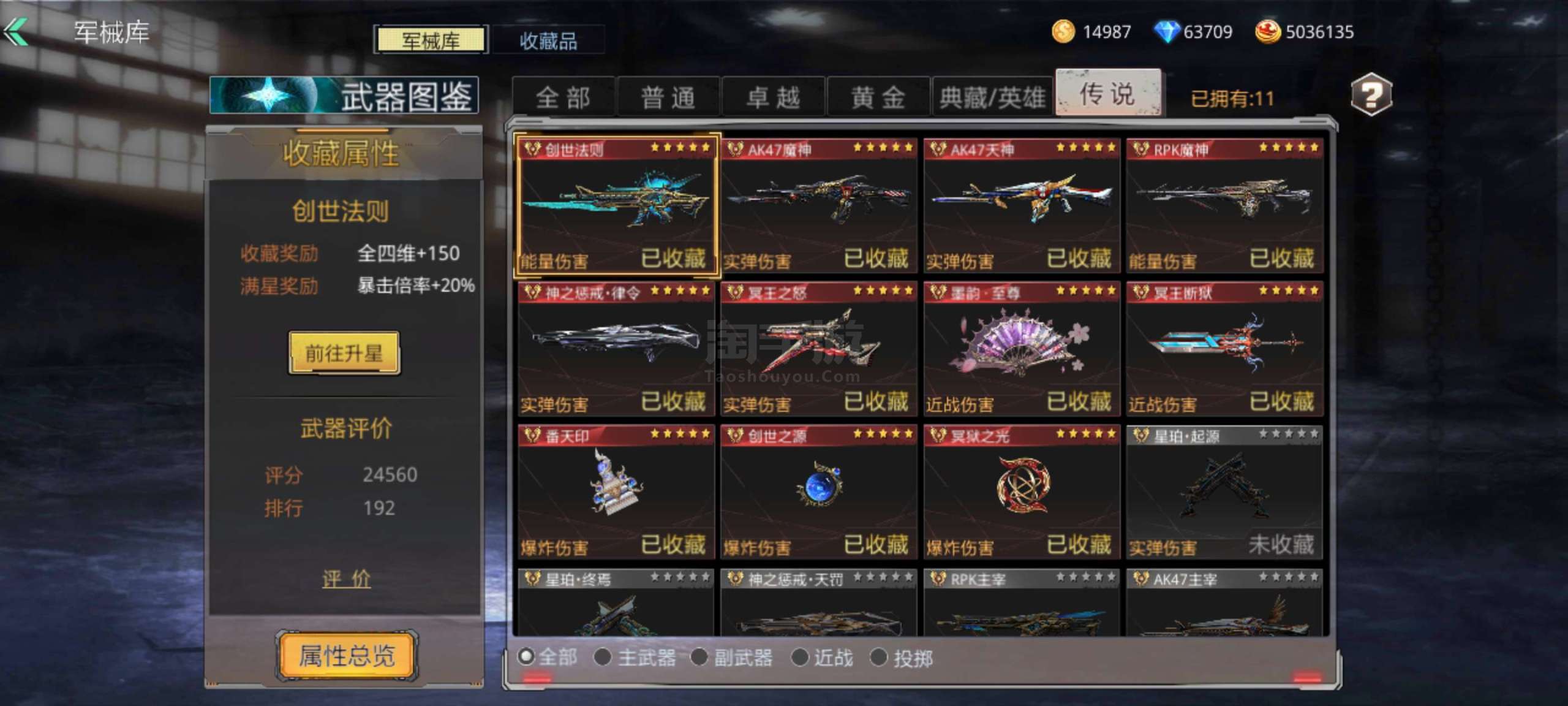 192w战力,法则等传说武器11把。扇子核心,芯片,大部分英雄武器都有,病毒核心,配件。