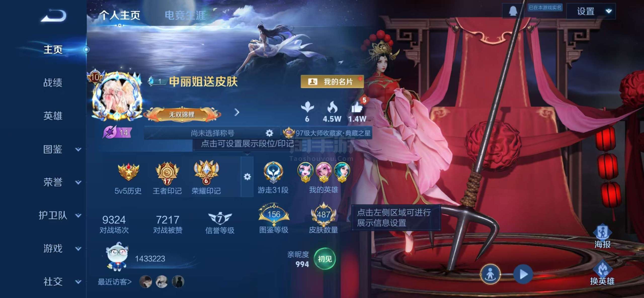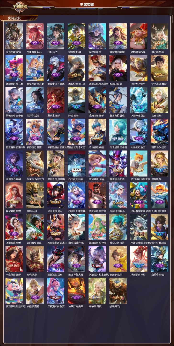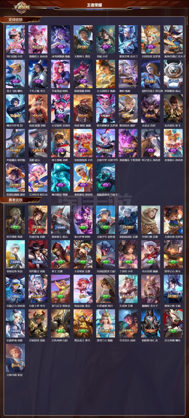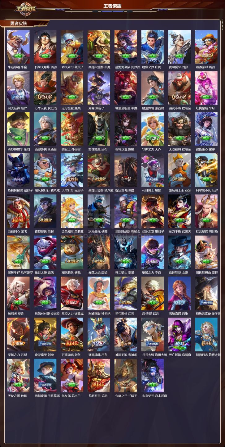 安卓QQ/绝世王者/487皮肤/126英雄/16典藏/0珍品无双/2无双/3珍品传说/63传说/16