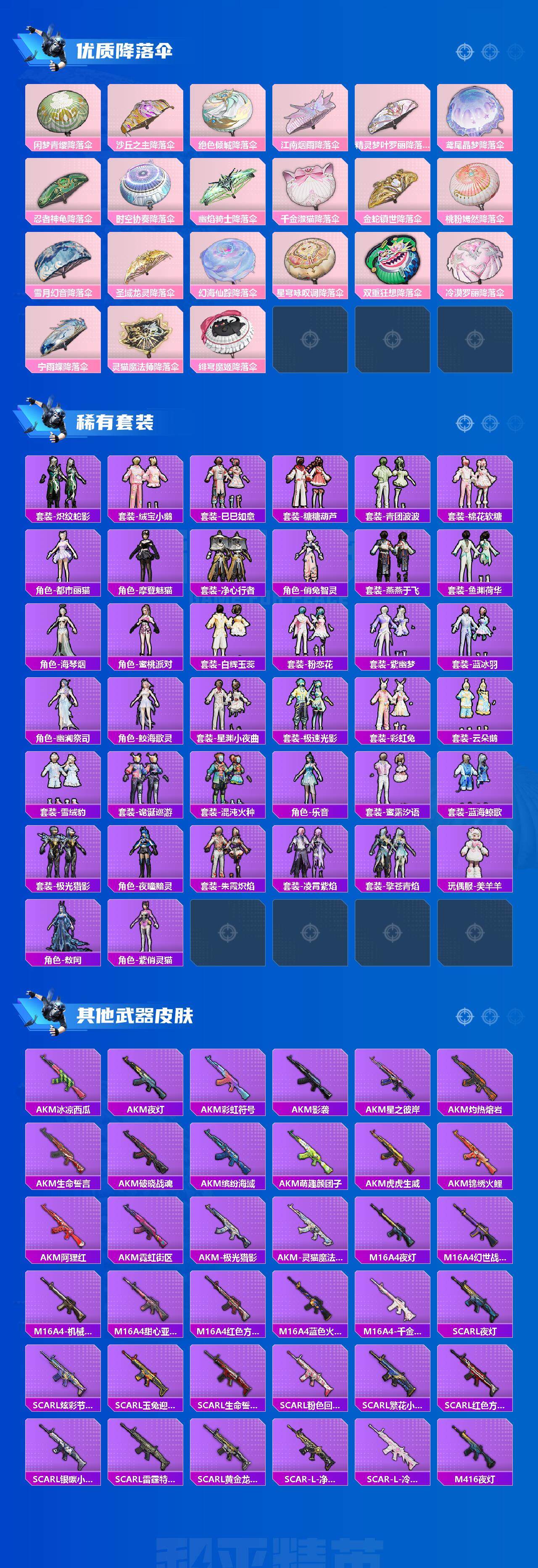【6880】31粉装-11特效枪-3载具-161137热力值-28印记-368套装-457枪皮【热门品类】:赤蝎幽灵,都市猎人,派对舞王【粉色套装】:雪国幻梦,梦幻火箭【粉色枪皮等级】:九级M416-至情至圣战神框