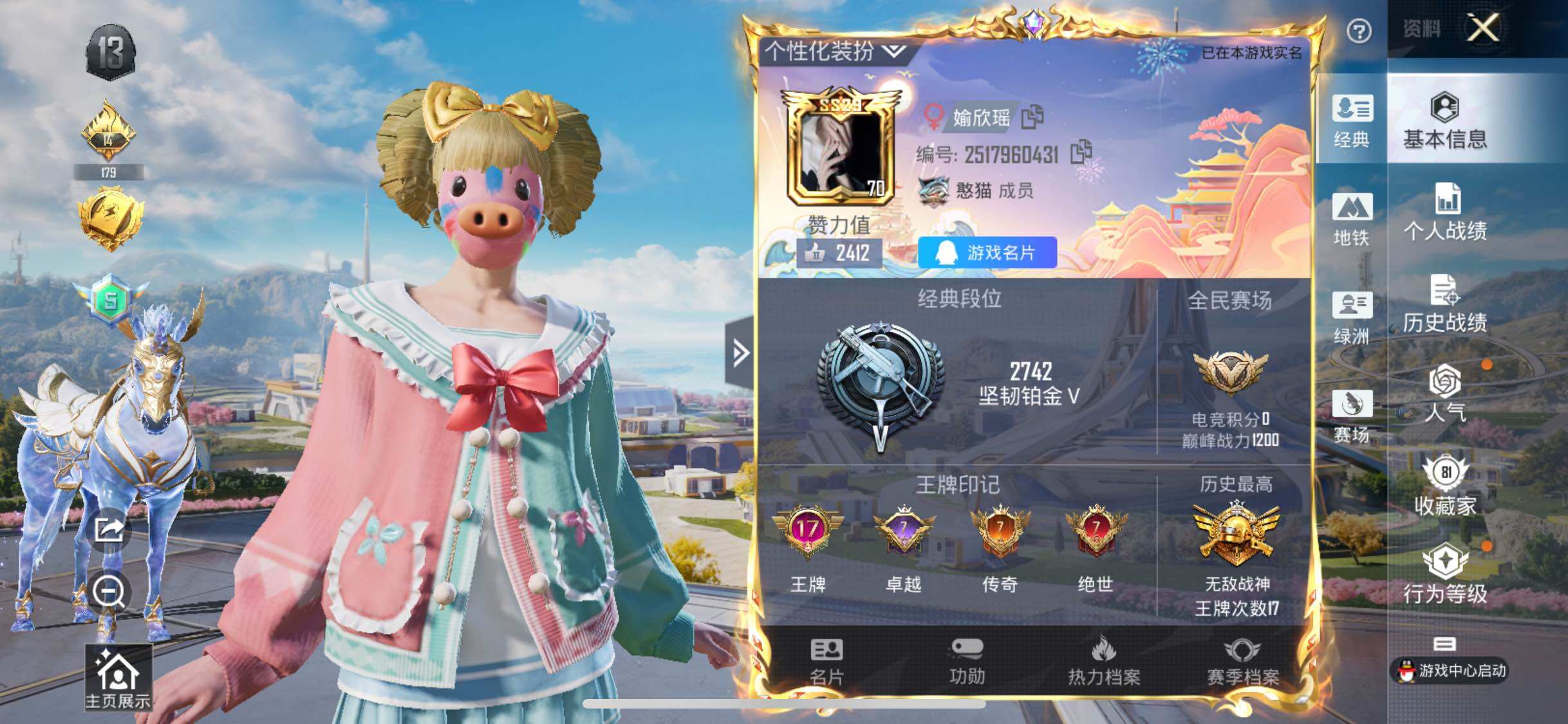 和平精英【苹果QQ】【精美公主号,面板印记777!!!战神框 AUG星梦奇缘 甜心三姐妹 童趣 猪