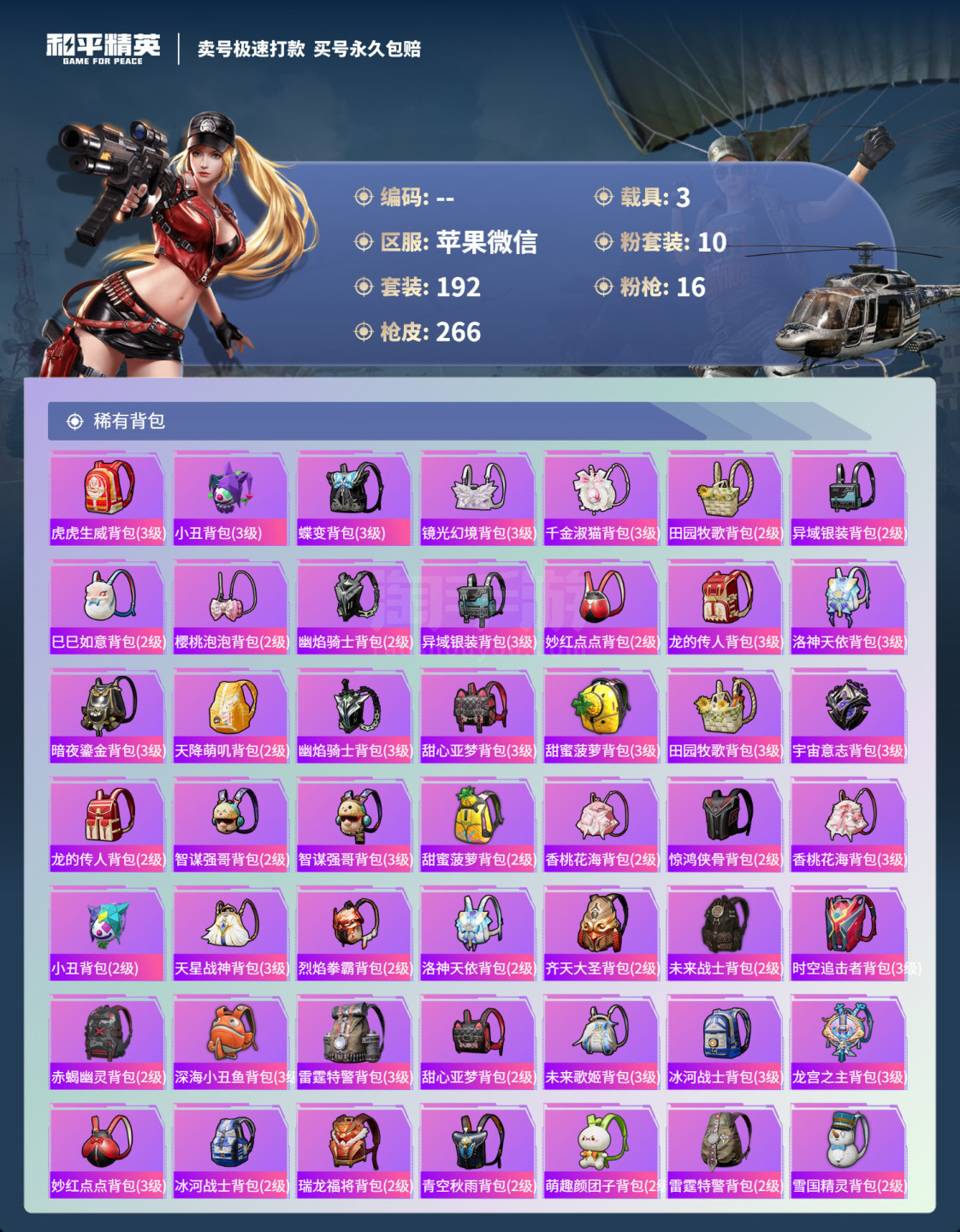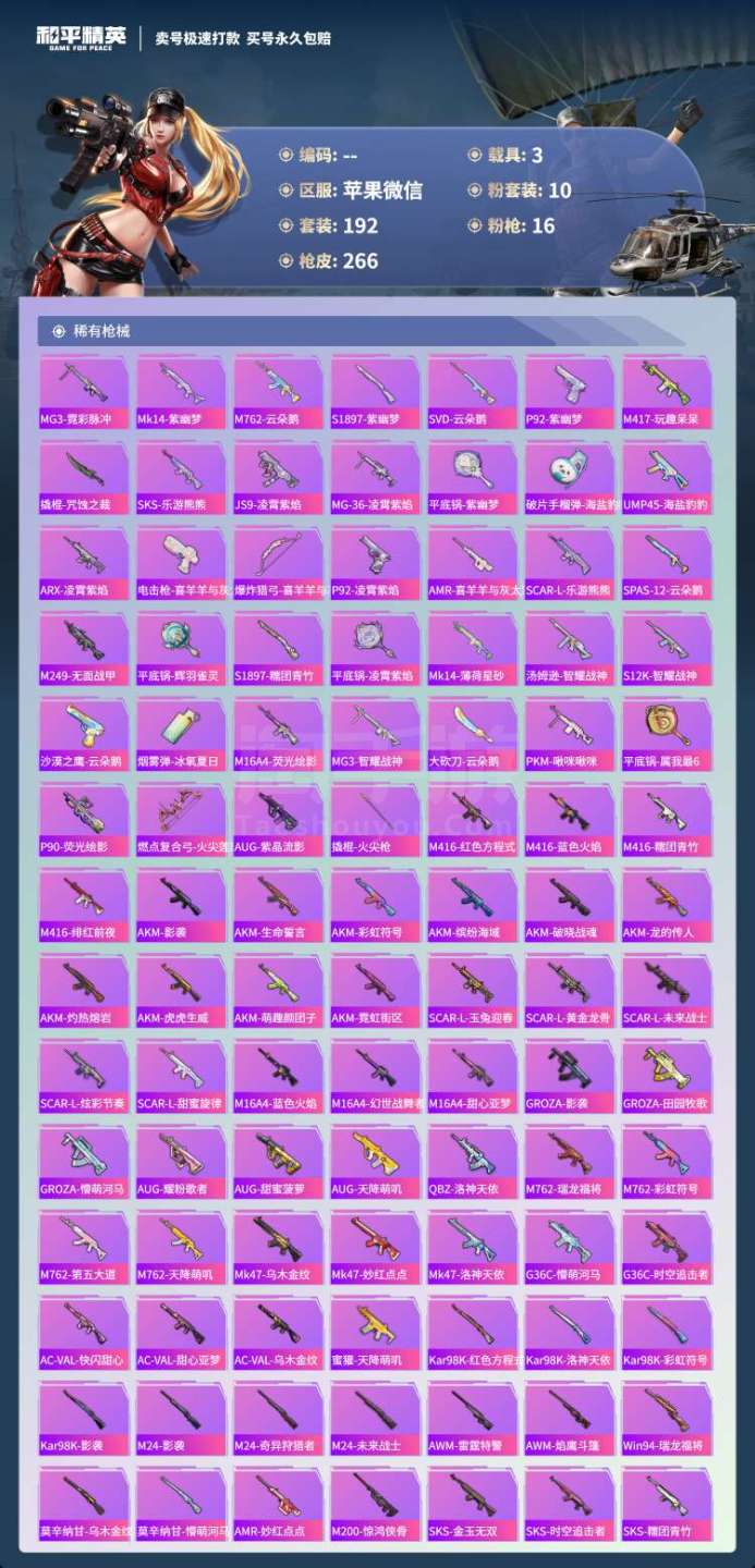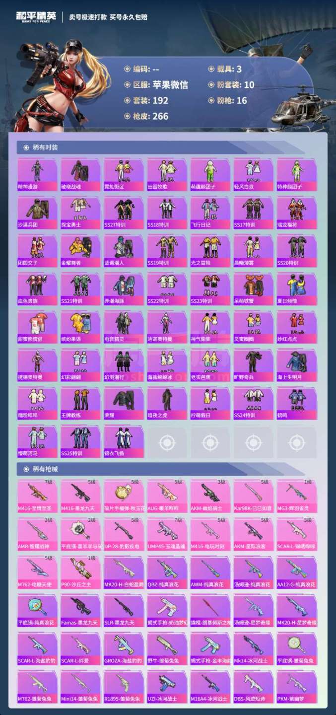 hs44000 苹果v-19王牌印记-有战神框-10粉装-16特效枪-3载具-97225热力值-1