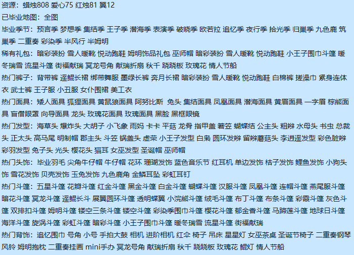 毕业季节:预言季 梦想季 集结季 王子季 潜海季 表演季 破晓季 欧若拉 追忆季 夜行季 拾光季 归巢季 九色鹿 筑巢季 二重奏 彩染季 半风行 半姆明