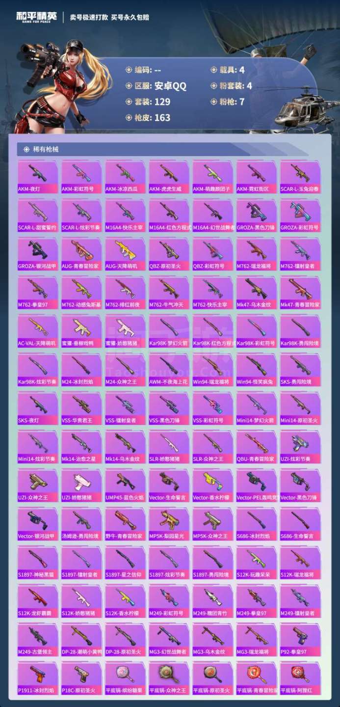 hs41687 安卓手Q-10王牌印记-4粉装-7特效枪-4载具-62628热力值-129套装-16