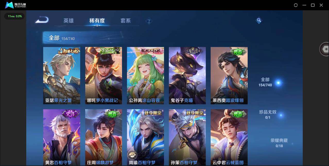 贵族等级: V6 英雄数: 125 皮肤数: 154 传说皮: 一念神魔 限定