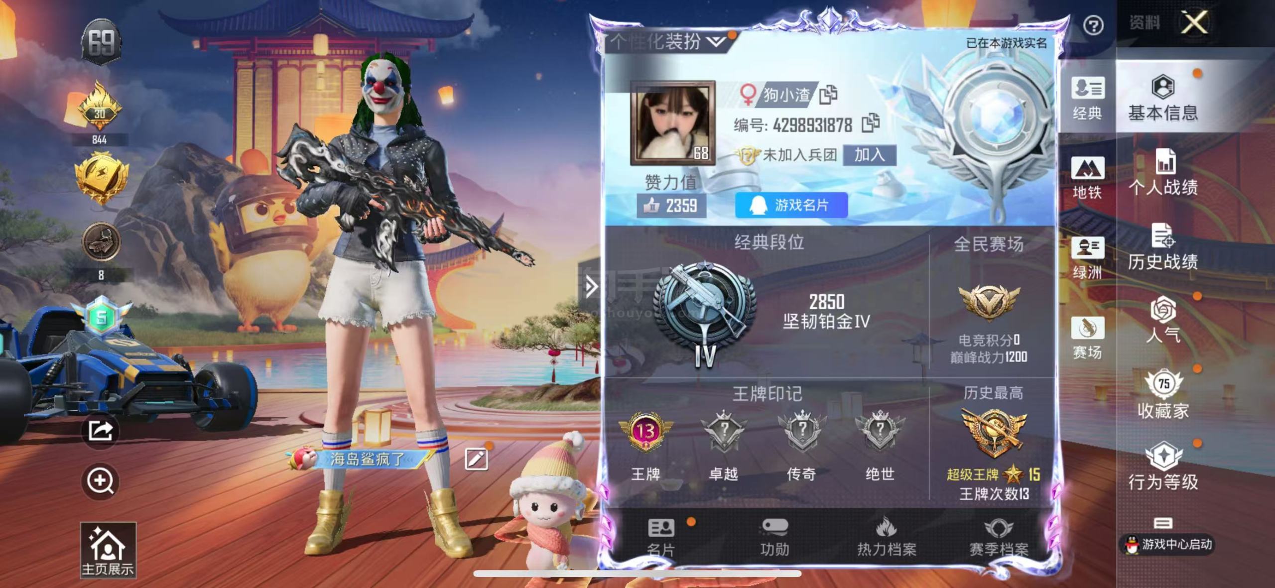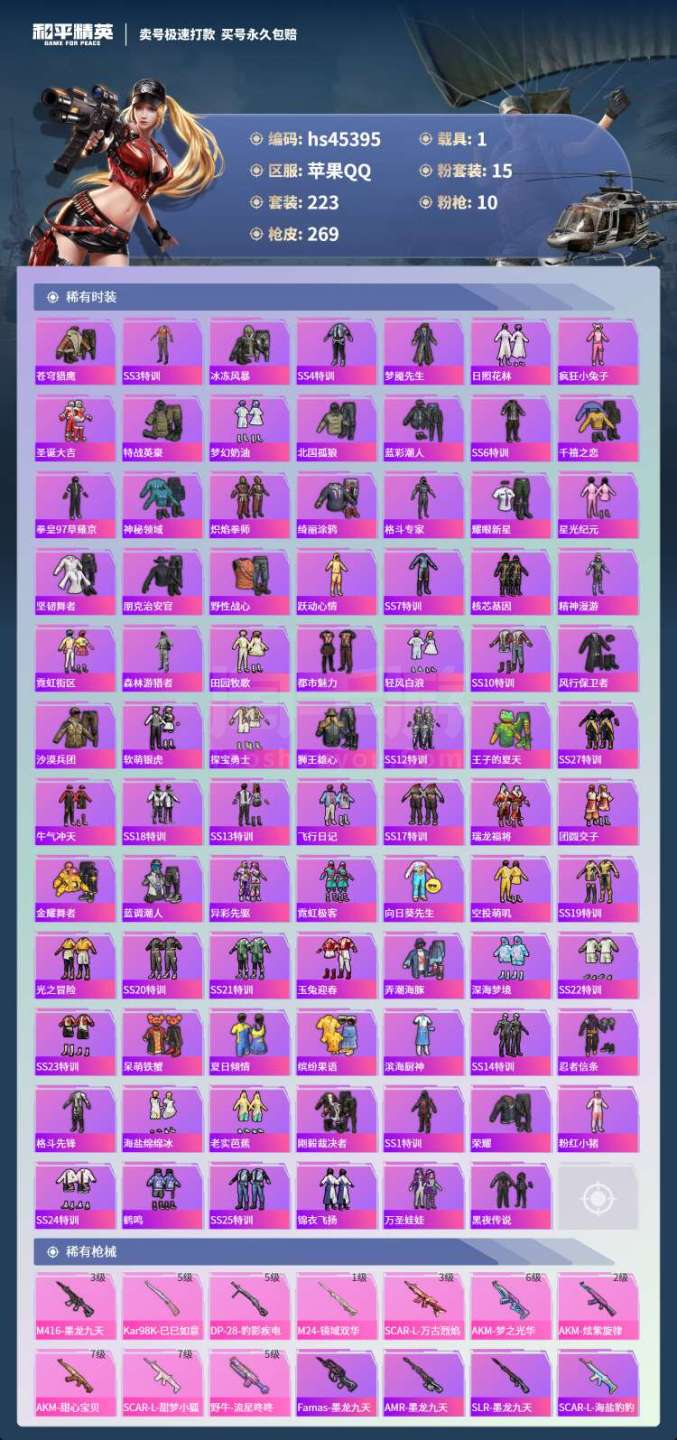 hs45395 苹果手Q-13王牌印记-15粉装-10特效枪-1载具-95141热力值-223套装-