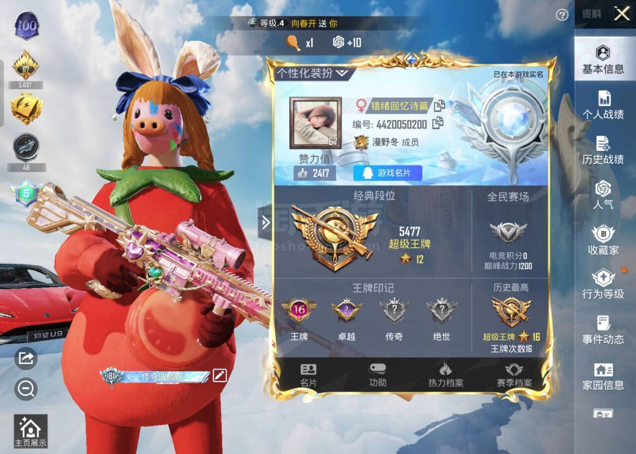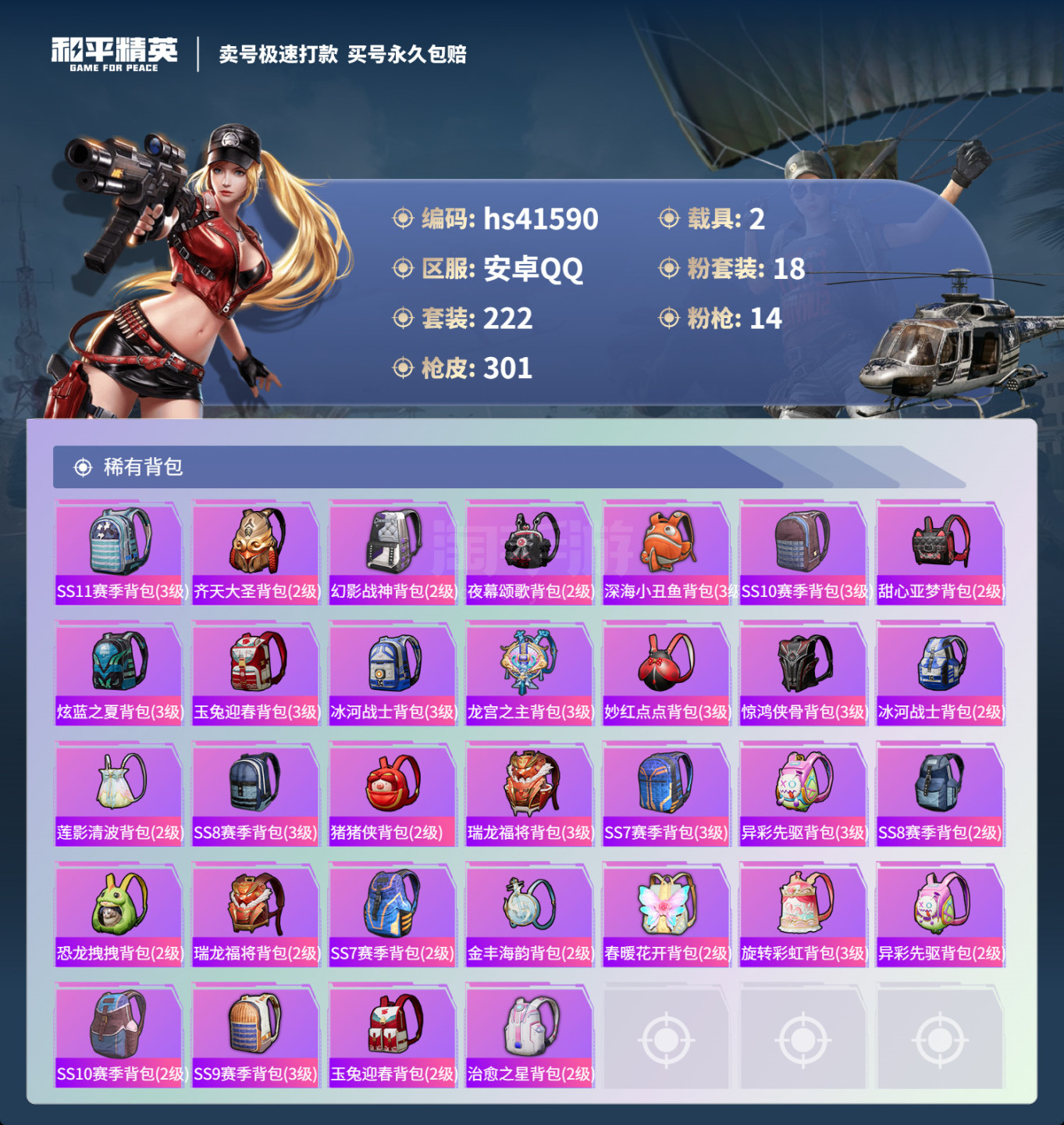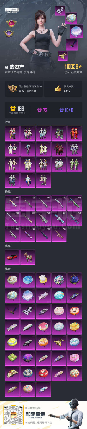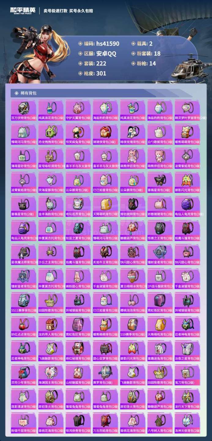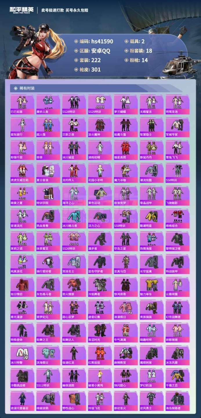 hs41590 安卓手Q-16王牌印记-18粉装-14特效枪-2载具-110661热力值-222套装
