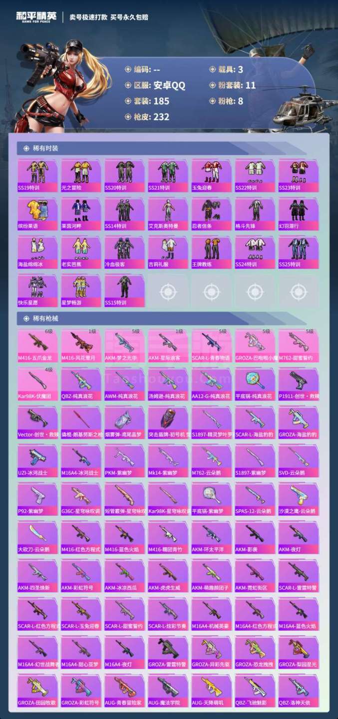 hs37722 安卓手Q-11王牌印记-11粉装-8特效枪-3载具-81979热力值-185套装-2