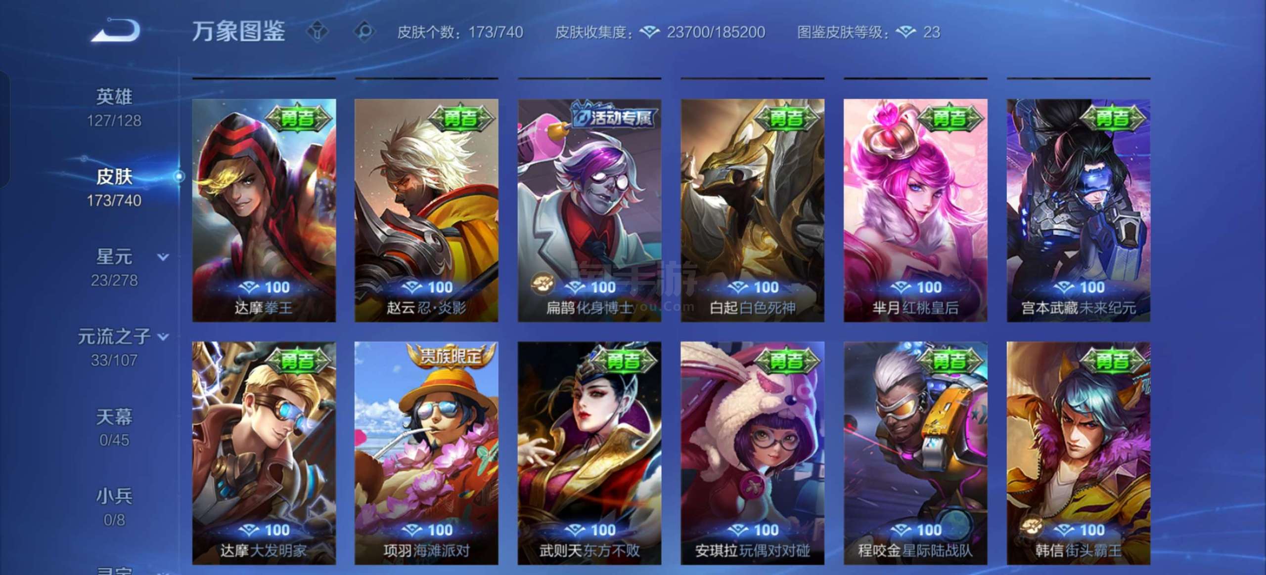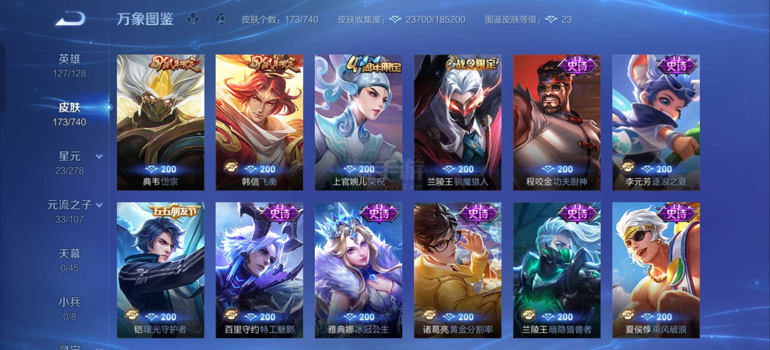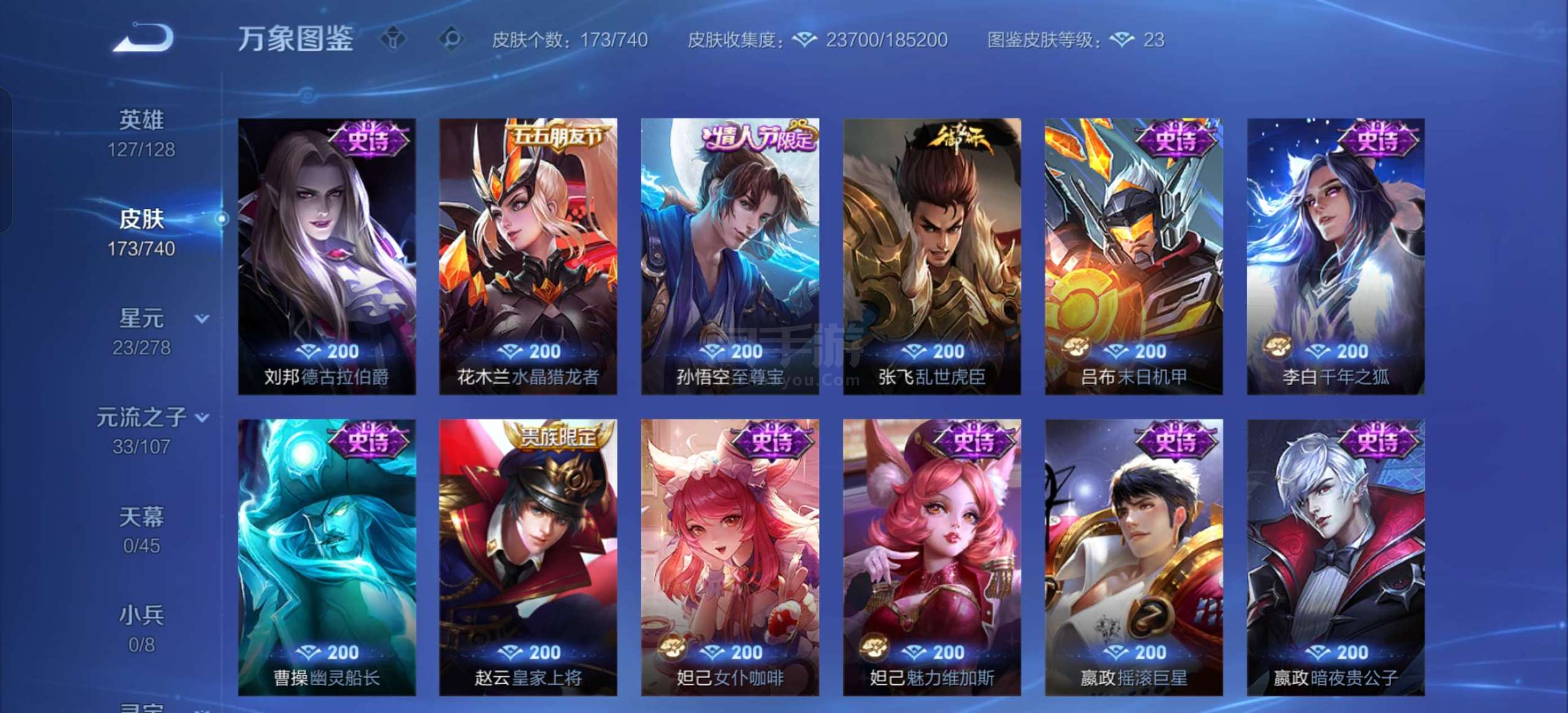 贵族v8,三个金标,全英雄武则天带皮肤,嬴政小龙人,