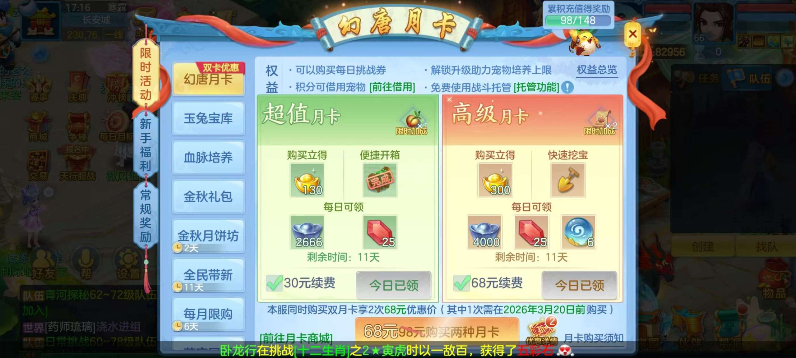幻唐志:逍遥外传(神武4)【安卓官方】天行健,男方寸,260万银子,高级月卡